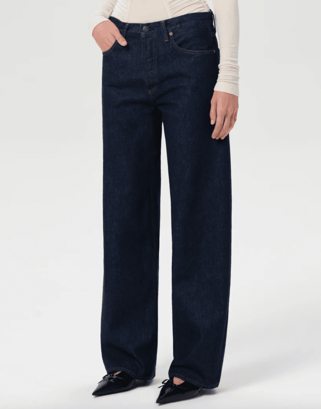 I'm going through a dark denim phase, and this pair of AGOLDE jeans has been in constant rotation this month. I love how stiff and structured it looks, while feeling so soft and comfortable on. It's the perfectly shade of dark wash indigo, and the cut straddles the line between wide-leg and barrel leg that somehow makes them perfect with every type of top and coat.