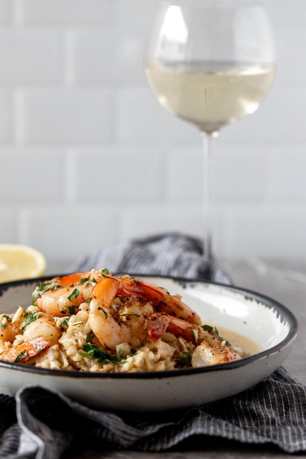 Photo: Courtesy of Kylie Mazon-Chambers“Shrimp in a garlic lemon butter sauce is served over a creamy risotto. This recipe can easily be scaled up to accommodate more guests. I recommend pairing this dish with a dry white wine.”