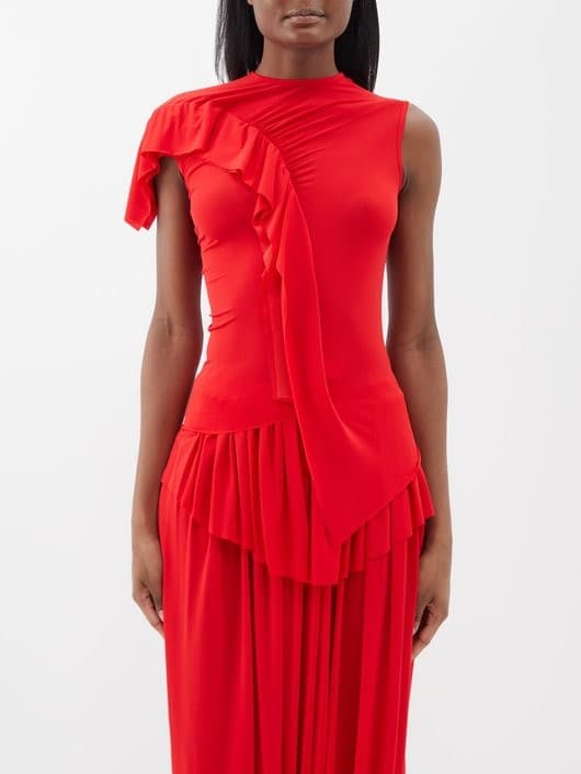 Shikaku Asymmetric Ruffled Jersey Blouse
