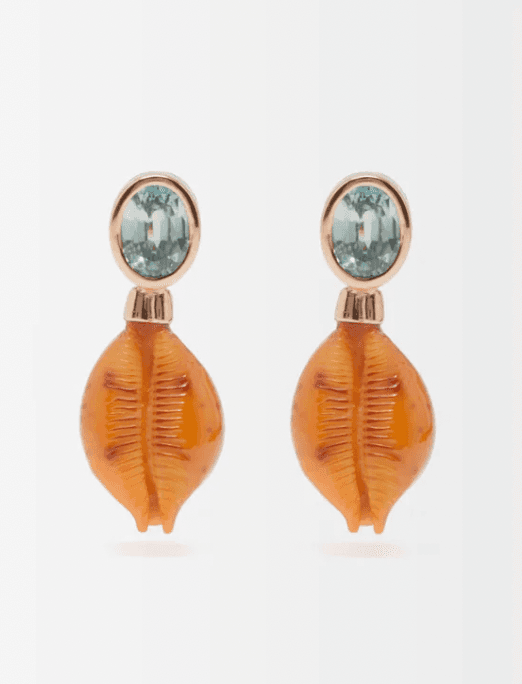 Cowrie-Shell, Zircon & 18kt Gold Earrings