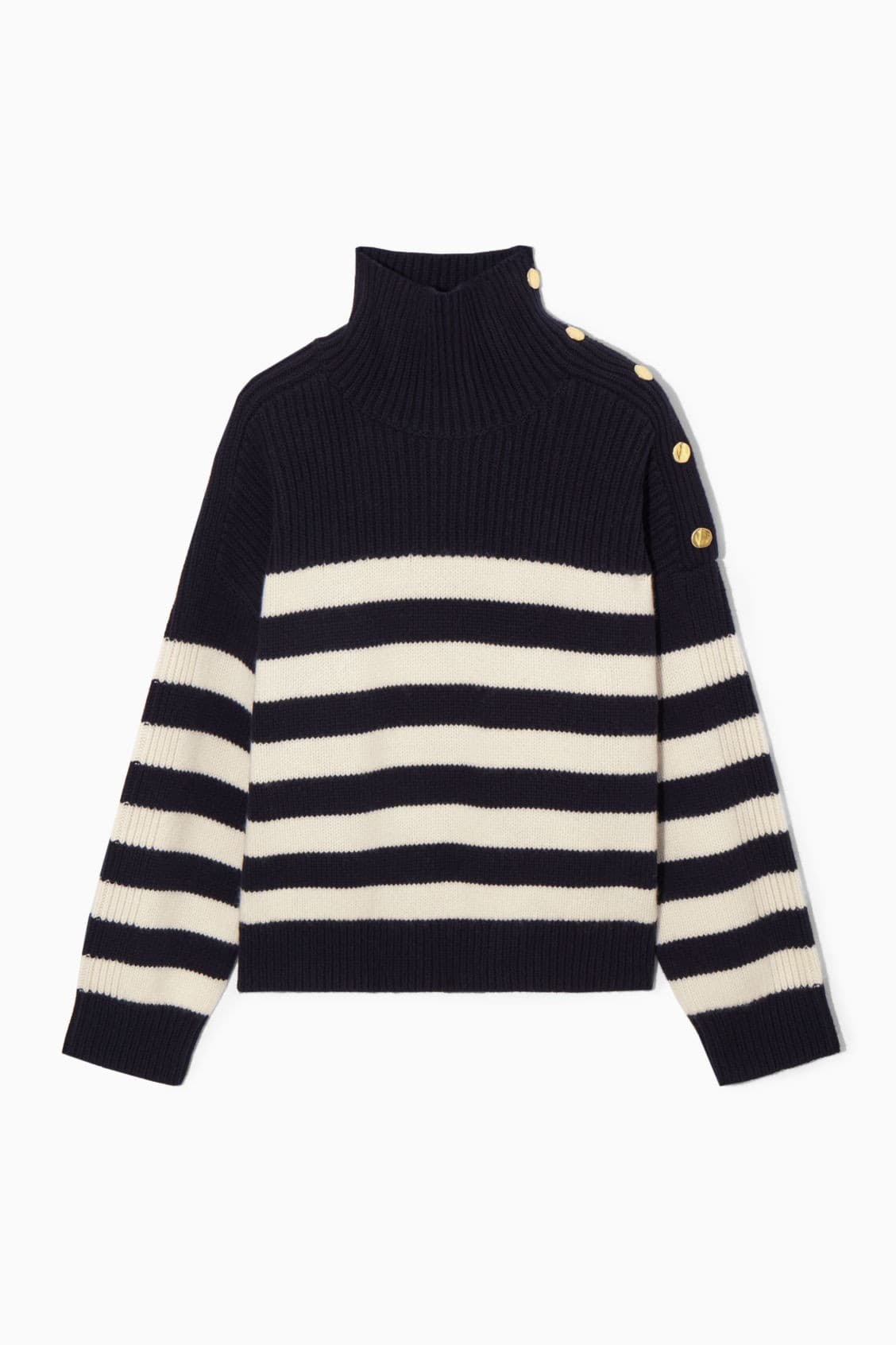 Button-embellished Striped Wool Sweater