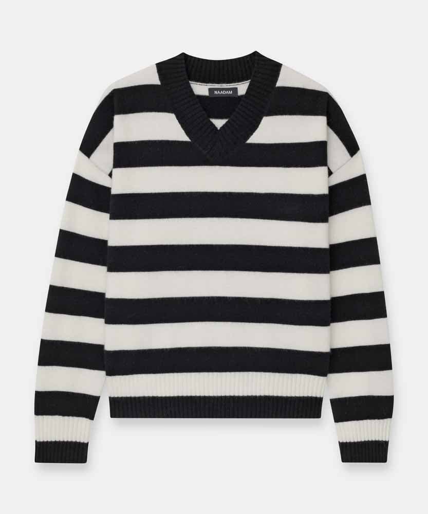 Cashmere Striped Boyfriend V-Neck Sweater