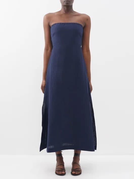 Penelope Strapless Organic-linen Midi Dress