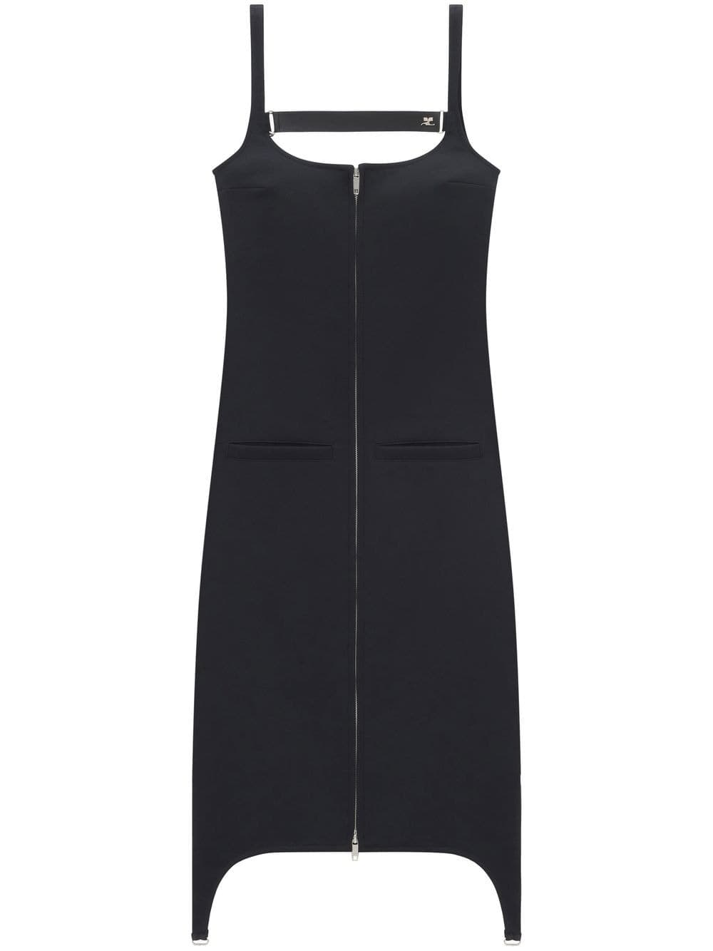 This dress has a couple of easily adjustable features to create multiple looks. Let the bretelle strap hang off the shoulder or clip it across your chest. Then, place your zipper wherever you want for a personalizable slit.