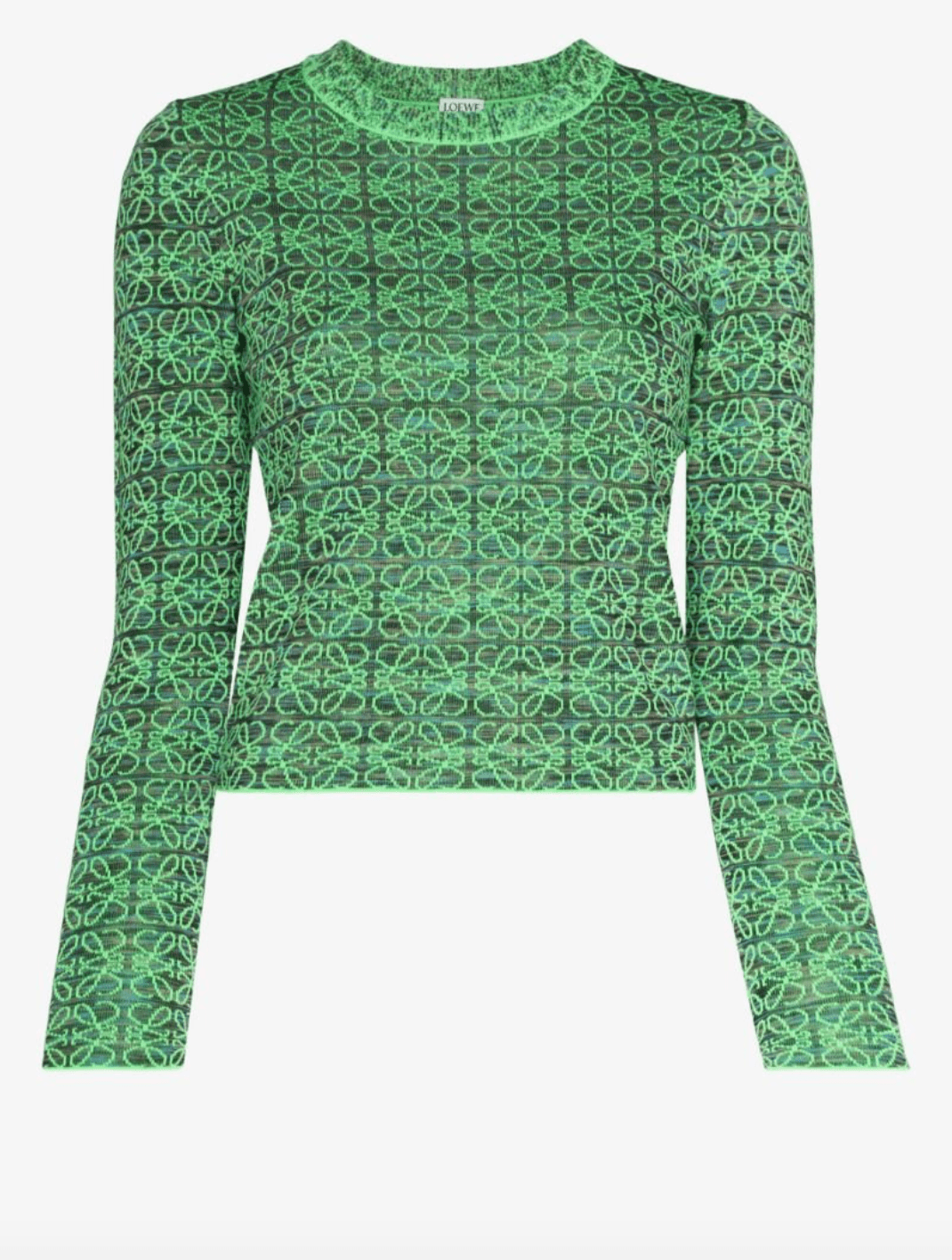 If you're in the market for a knit that makes a statement, we suggest this lime green riff on Loewe's iconic anagram.