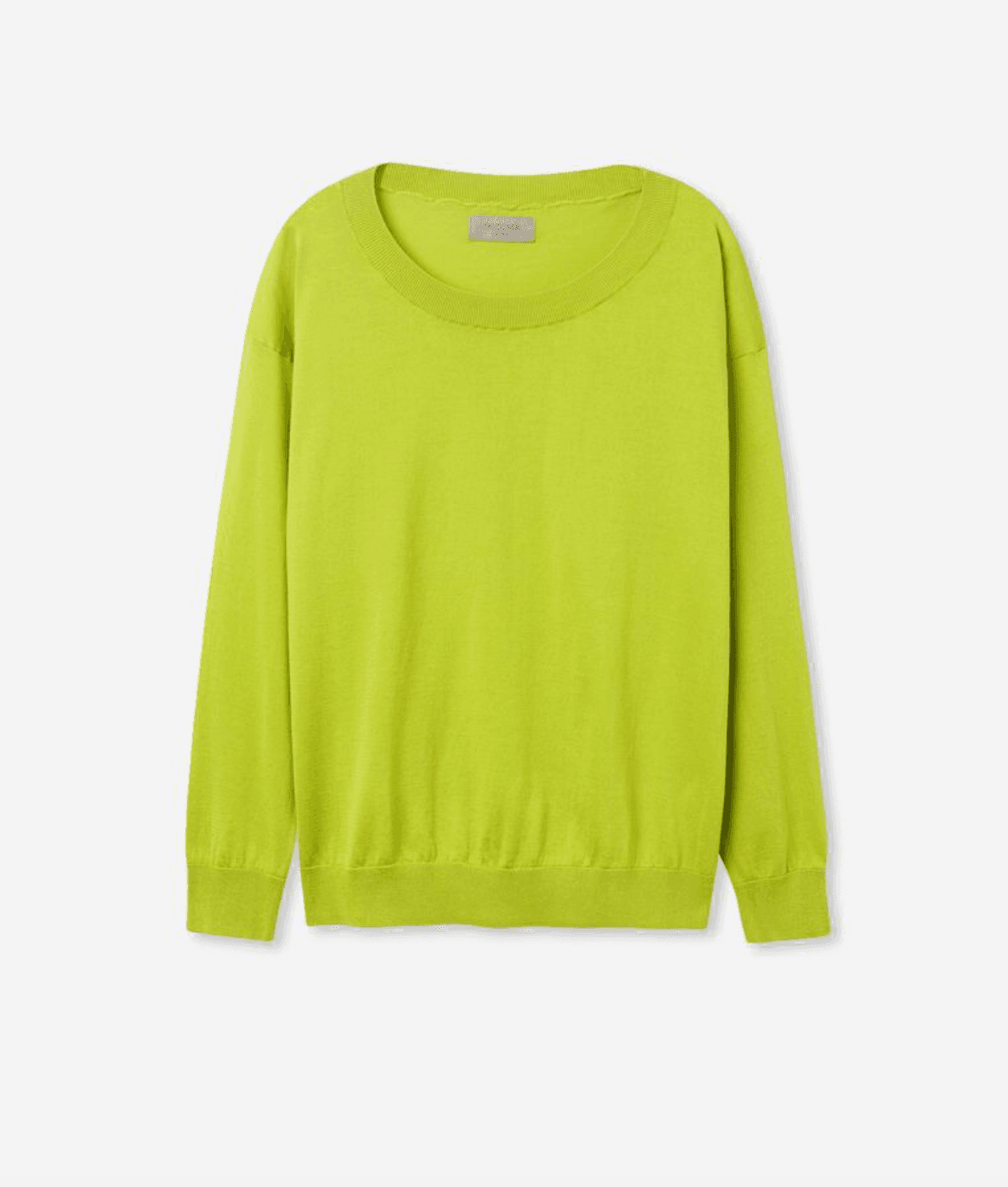 Though classic in cut, this Falconeri knit boasts a chartreuse hue guaranteed to make a statement. We suggest pairing yours with denim in a blue wash.