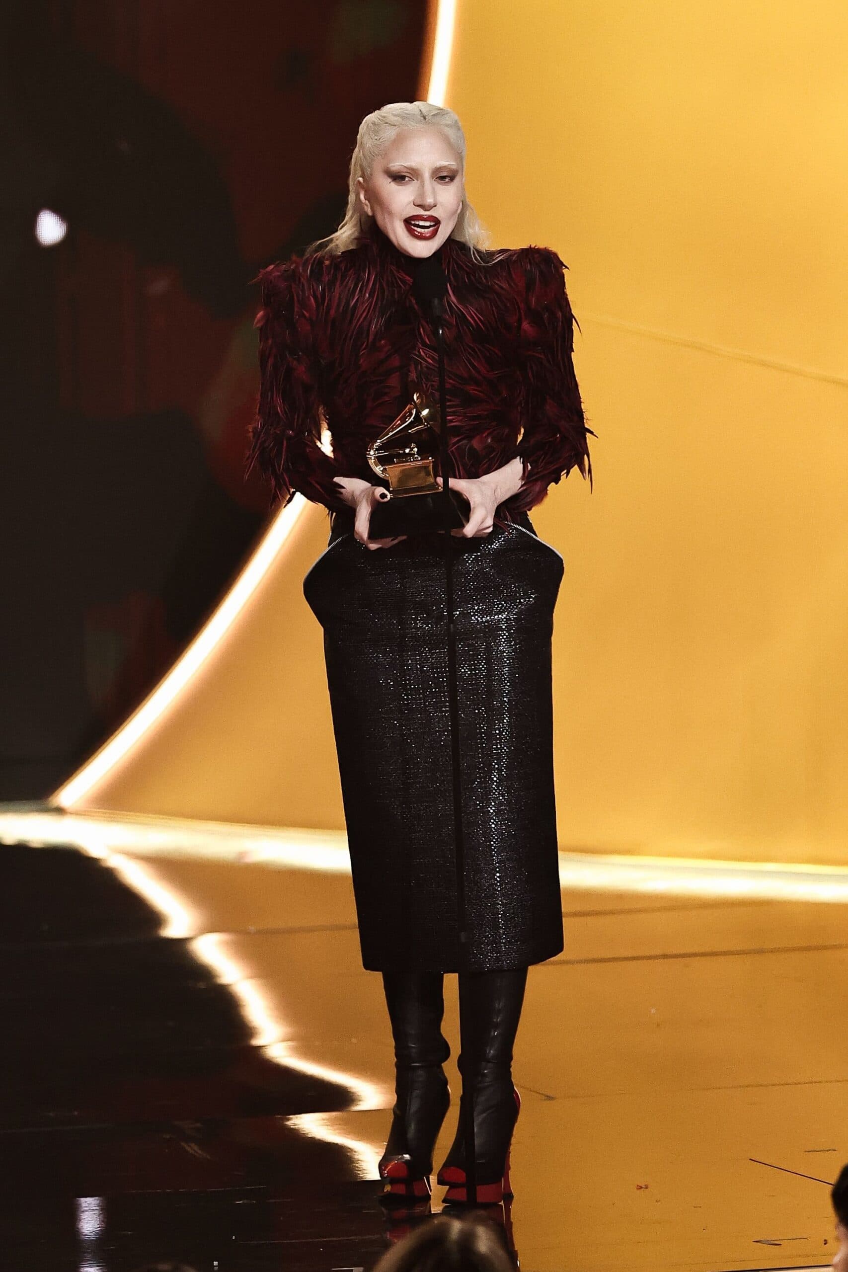 ShutterstockAt the 2026 Grammys, Lady Gaga wore a perfect structures feather look from Alexander McQueen's Fall/Winter 2009 collection.