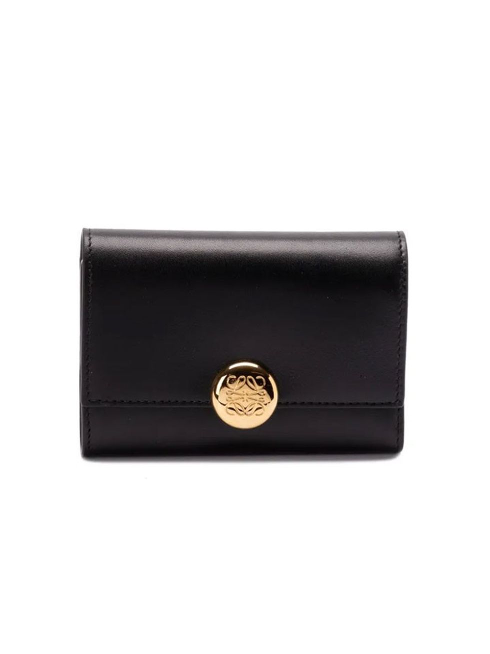 This classic wallet is perfect for those looking for understated elevation. Crafted of black nappa leather with Loewe's signature Chrome Pebble detail, it features a foldover top with press-stud fastening, internal zip-fastening pocket, and internal card slots.