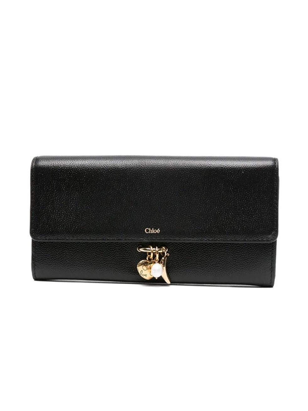 I love this slightly longer Chloé wallet with the brand's signature charms for a little added fun. This piece features a zip pocket, fold over closure, and multiple card slots.