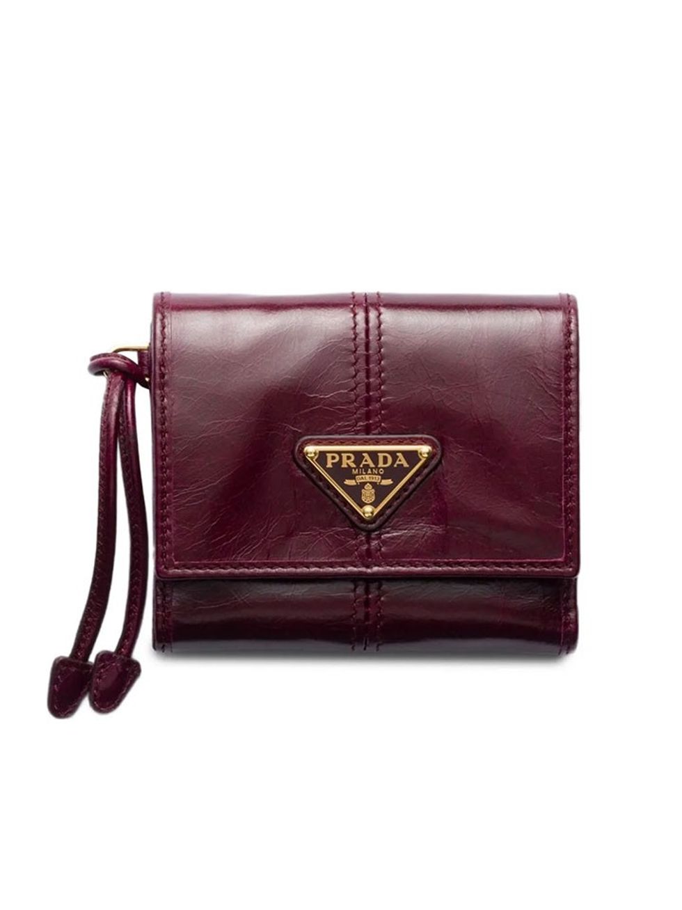I love this glossy burgundy Prada option, which feels especially perfect for the holiday season. The small but effective wallet features a zip fastening, internal card slots, contrast stitching, and a detachable cord.