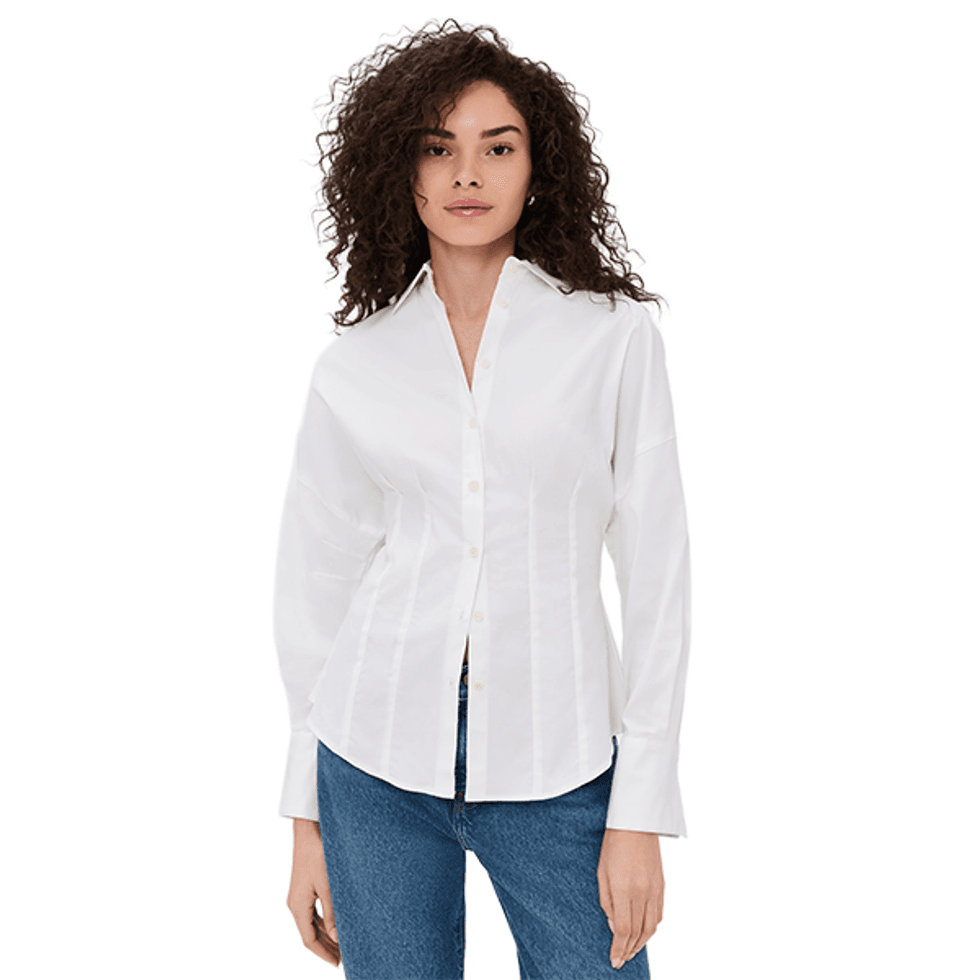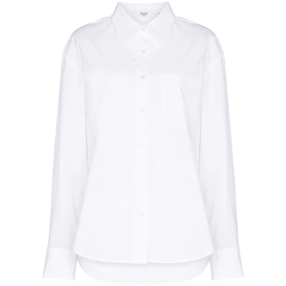 Today, it's fair to say that the white button down shirt (on women in particular) has had it's fair share of iconic movie moments. From Audrey Hepburn in "Roman Holiday" to Angelina Jolie in "Mr. & Mrs. Smith" to Uma Thurman in "Pulp Fiction," the styles everlasting presence both on screen and on runways affirms that this is a wardrobe staple that's going absolutely nowhere—and might just be the key to an effortlessly chic look. Ahead, see the 10 best button down shirts to shop for a timeless wardrobe.