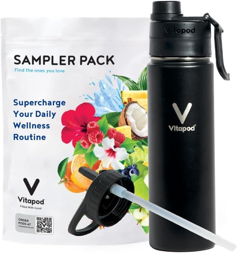 This is not your ordinary stainless steel water bottle. The Vitapod Go water bottle has water enhancer pods that feature 11 delicious and nutritious flavors packed with essential minerals and flavonoids to boost your health, revolutionizing your wellness routine wherever you go.