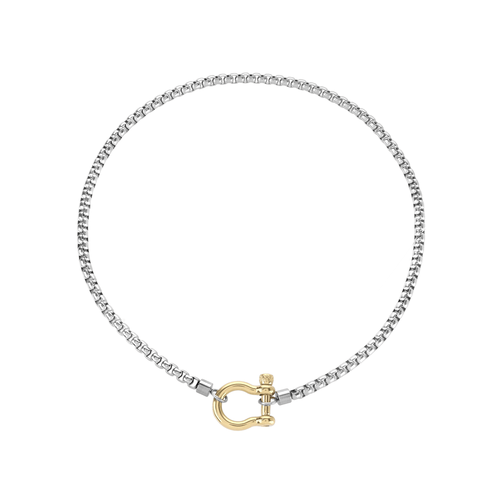 This unisex stainless steel 18k gold-plated horseshoe chain necklace is a versatile option to wear alone or layered with other jewelry.