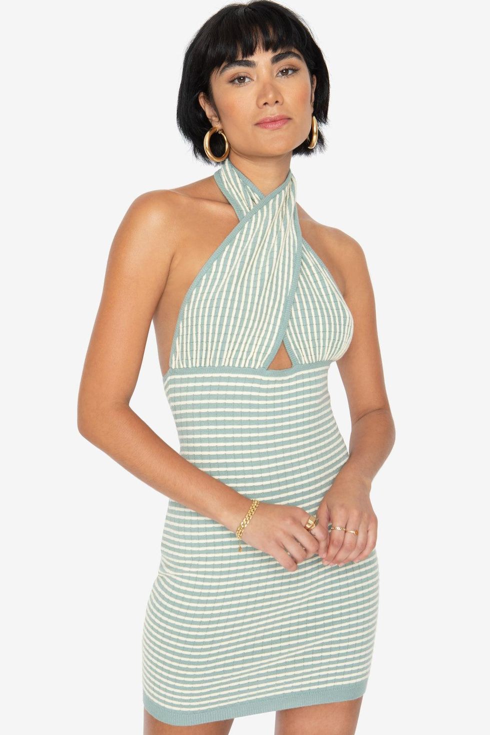 Callahan was launched in 2013 by fashion buyer-turned-designer Michelle Callahan. “We love their beautiful knit sets, and the fact that they make bold knitwear completely seasonless,” Oppenheimer says. This gorgeous striped halter dress in teal is a great place to start.