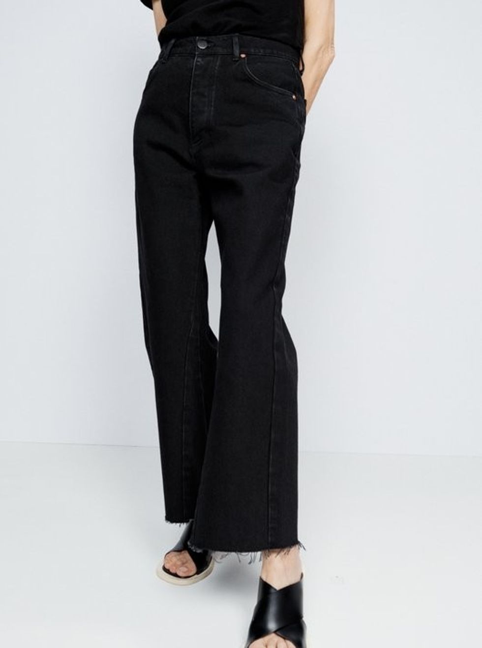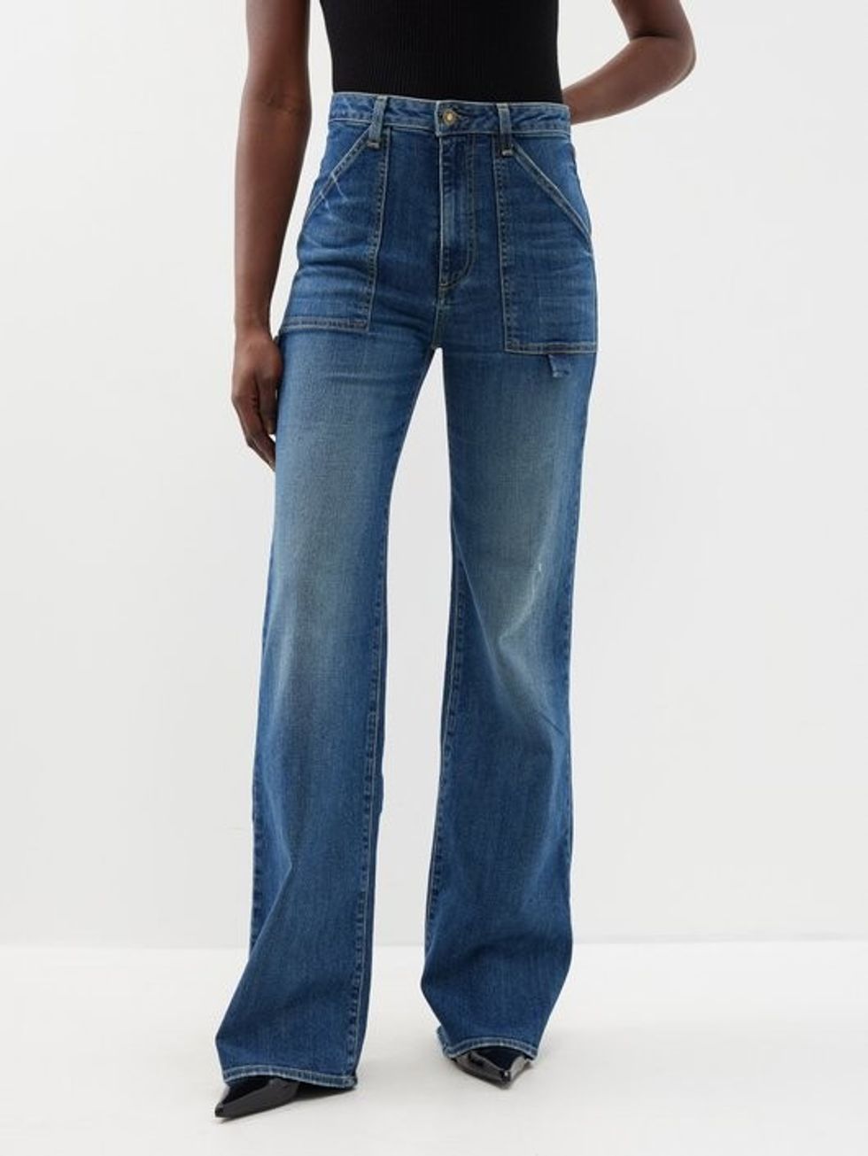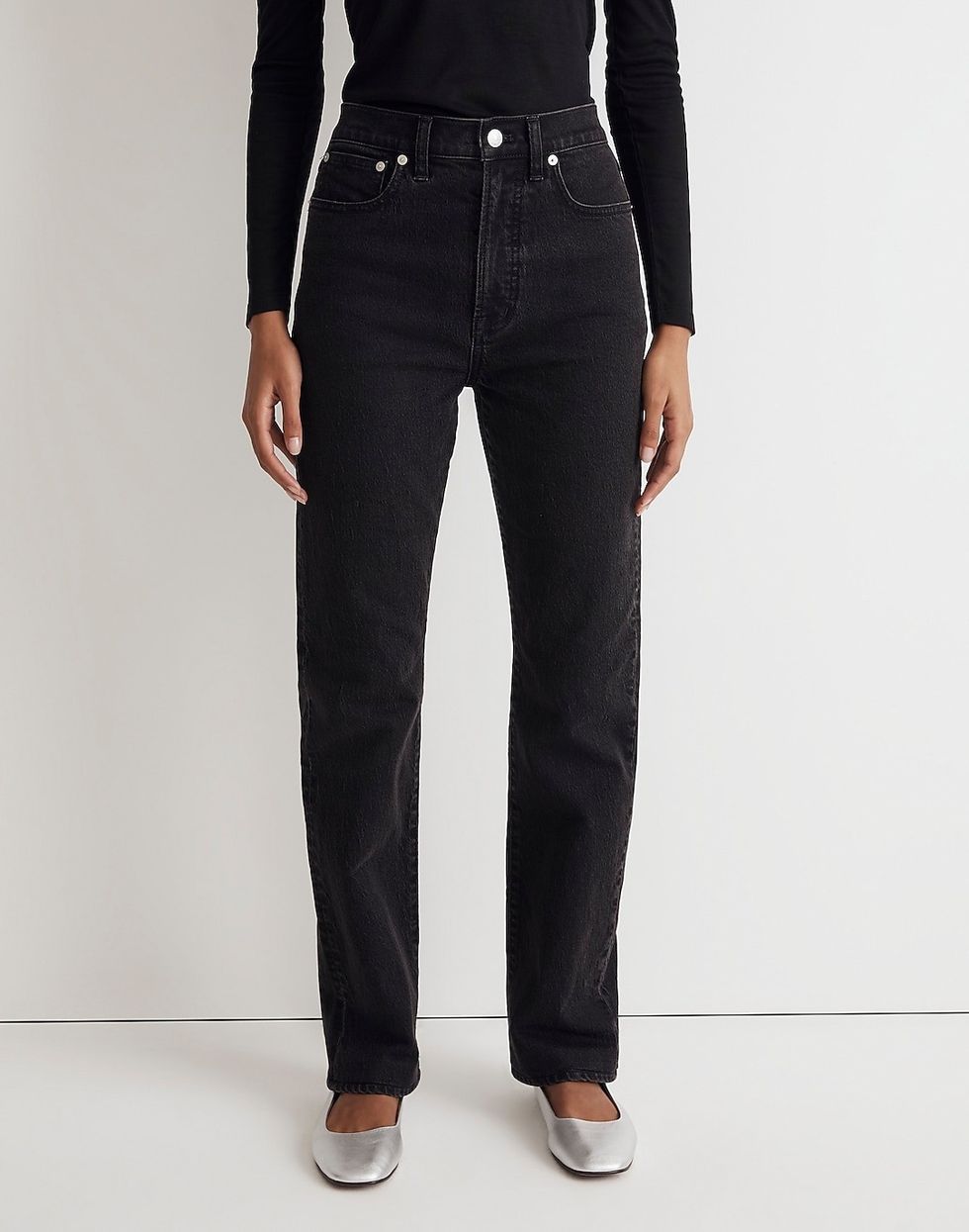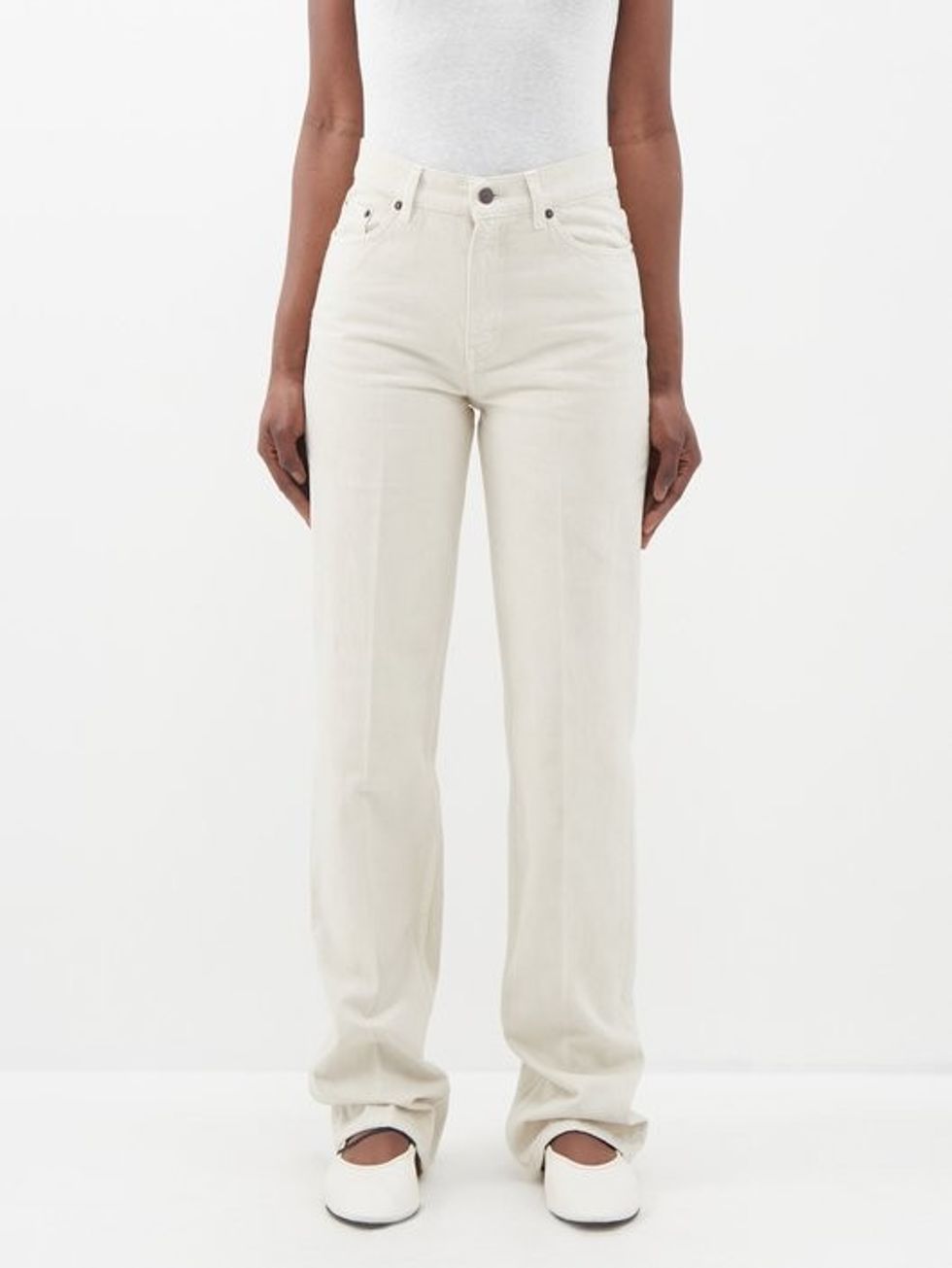 This era’s mom jeans are high-rise straight jeans. Slim straight is great for all shapes. The simple stovepipe shape provides a flattering fit and is the perfect pairing for sweaters all fall long. Embrace relaxed fit jeans or slim fit jeans, raw denim, or elastane. Ultra high-rise ribcage from Agolde or low-slung Chimala—each could be your best straight-leg jeans. Or perhaps you prefer Levi’s wedgie ankle jeans? Splurge on Khaite or save on Madewell—take your pick.