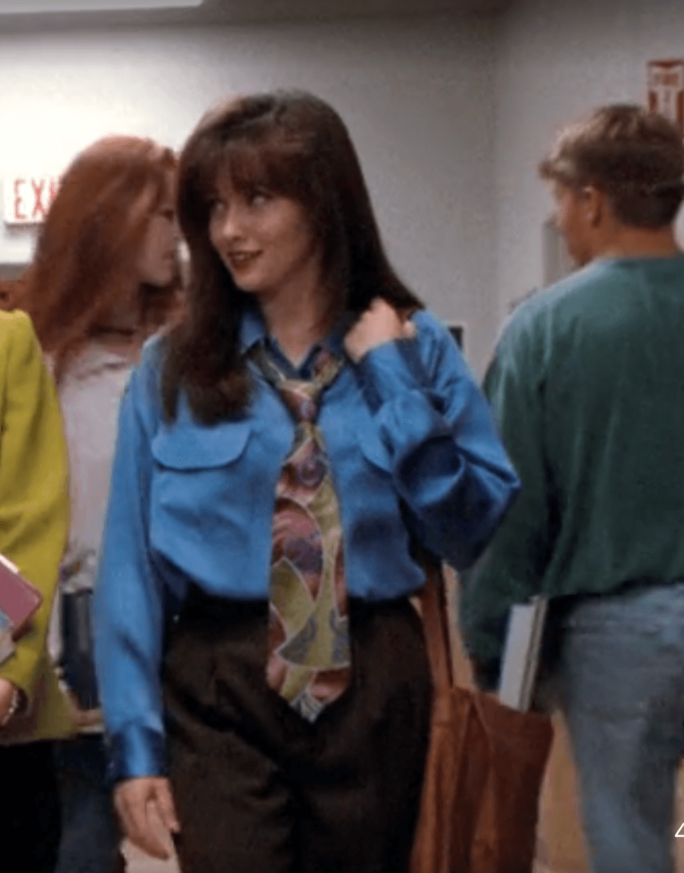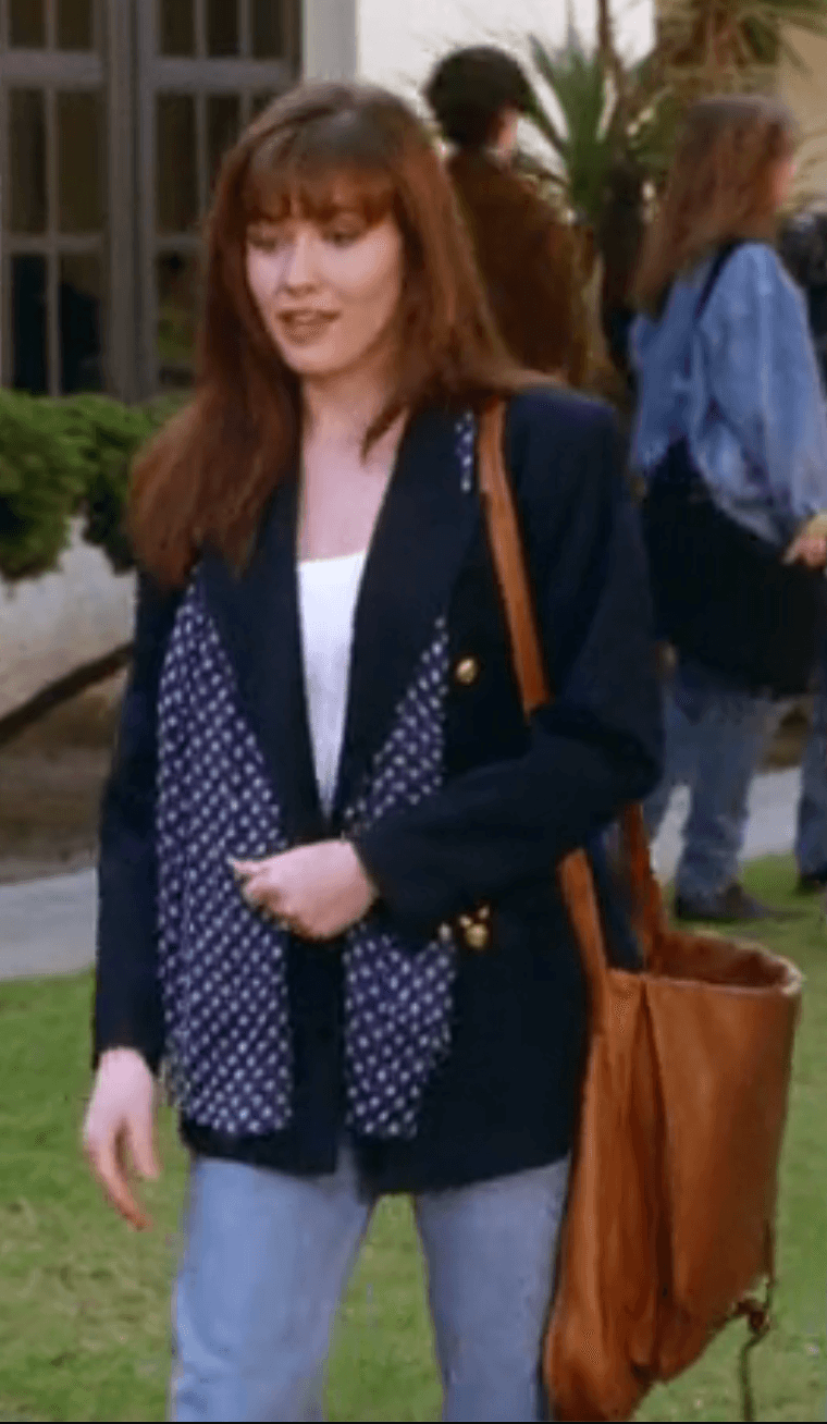 Throughout the entire run of the series, Brenda Walsh displayed her rotation of oversized blazers of varying colors, patterns, and materials: from wool to cotton to color blocked to plaid. She would layer them over t-shirts and blouses, while occasionally layering over nothing at all.
