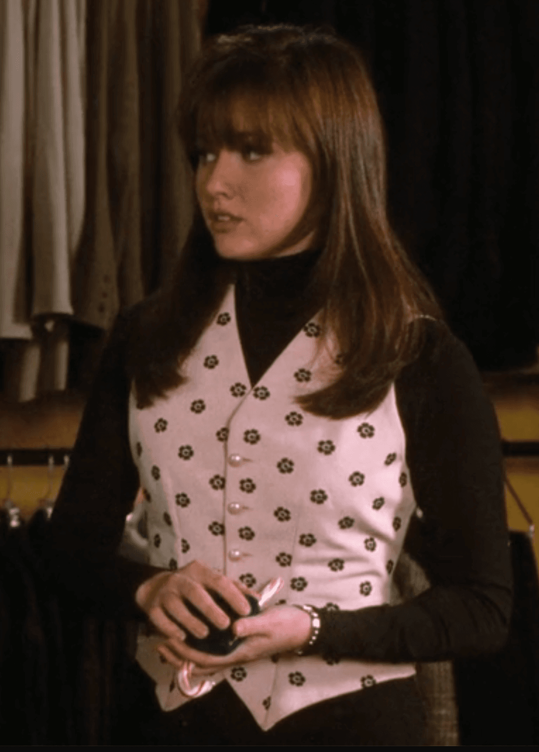 Paramount PlusBrenda Walsh was unafraid to experiment with layering—she would throw blazers over vests over blouses with little to no hesitation in the same way that she was comfortable in looks typically associated with menswear. She often wore sweater vests and waistcoats underneath cotton and knit turtlenecks, as well as striped button down tops.