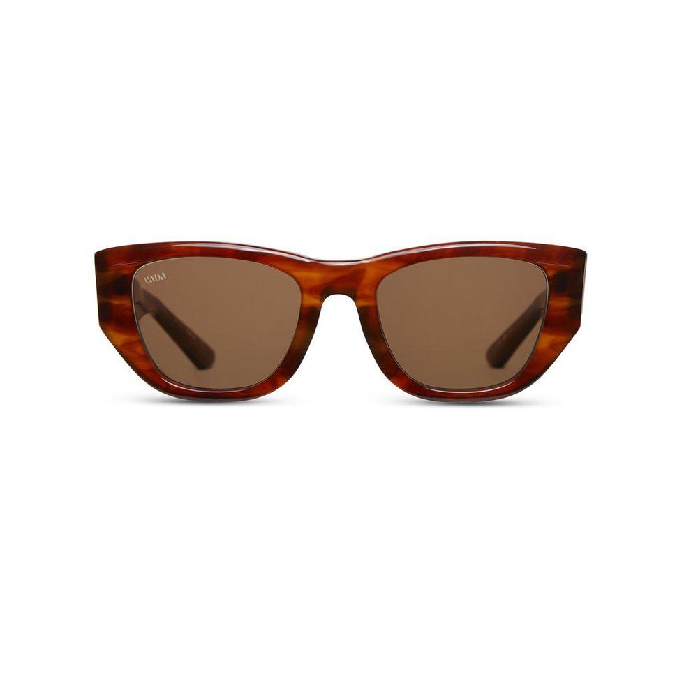 Keep everything streamlined with the continuation of the black hue of your leggings into a black blazer—buttoned all the way up. A simple yet classic pair of nude flats won't disrupt your lines, while tortoise sunglasses tie a brown leather bag in with your black ensemble.