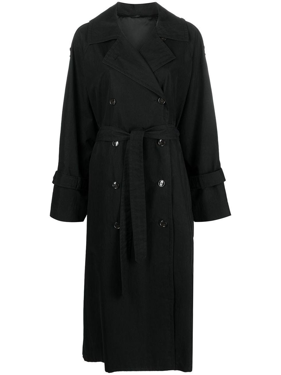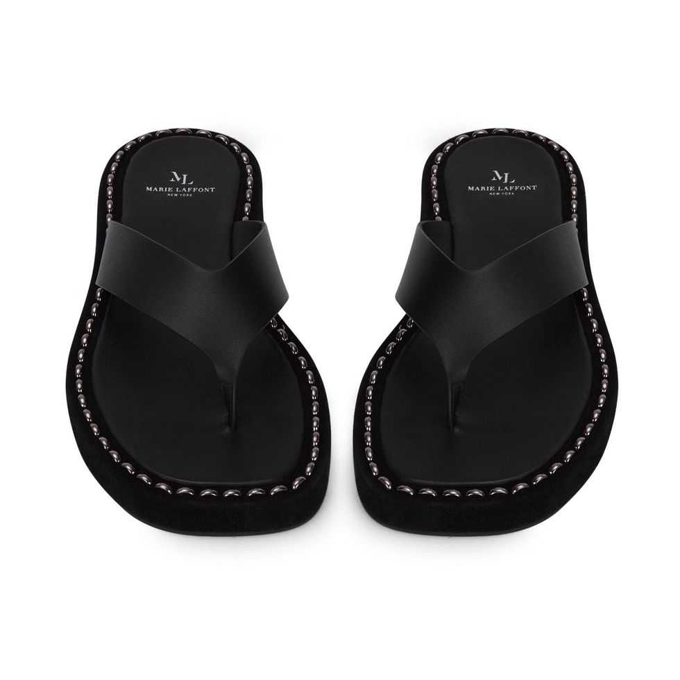 A polished striped shirt goes with anything—including a pair of split-hem leggings. The slinky separates peek out from beneath a boxy black trench, and a pair of flip-flops keeps everyone on their toes.