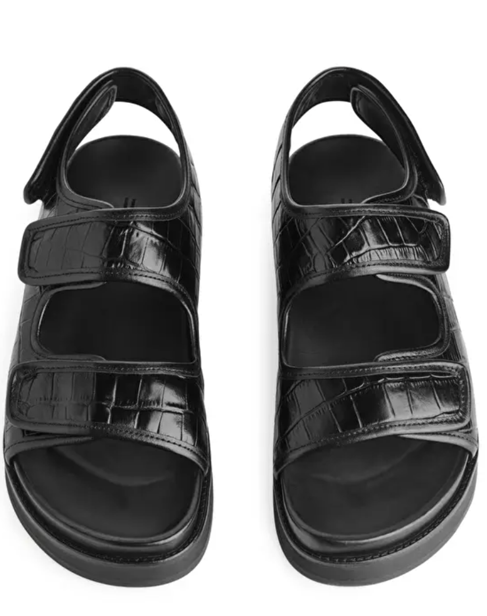 Diverge from dark hues by contrasting leggings with a crisp white jacket. Adding a pair of chunky dad sandals to your figure-hugging leggings and boxy outerwear gives you an interesting range of proportions.
