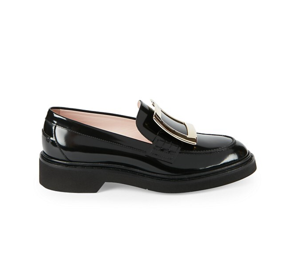 Though stirrup leggings are often styled with heels, loafers still provide the necessary shoe shape minus the discomfort. The loafers also soften the sleek black leather and pant combination by adding a boyish touch.