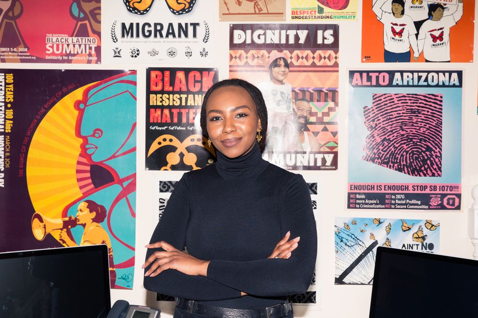 “I was born and raised in Phoenix, Arizona—my parents are Nigerian immigrants. I grew up as a young Black woman in a time where immigration was contested, and in the popular discourse folks were seeing migration as a problem. Our communities were being criminalized—particularly because I grew up around Black immigrants from Nigeria. I witnessed firsthand the impact of racial profiling on my own family members, people I went to church with and grew up with.