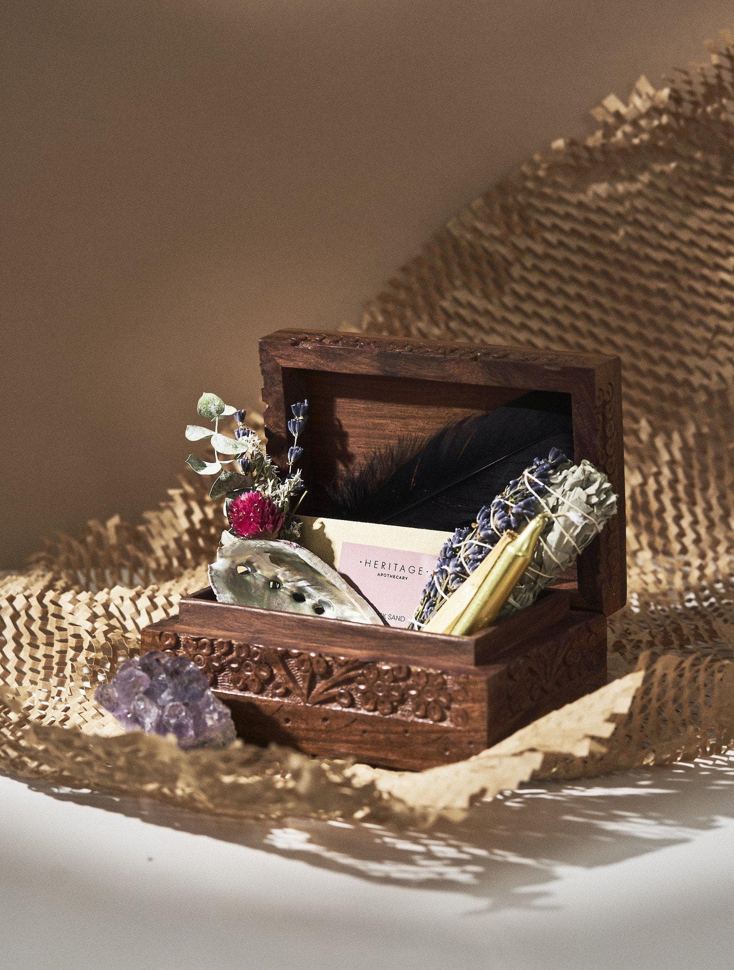 Heritage Apothecary is not short on spiritual tools. Herbal smudging bundles, charging bowls, crystals, incense, cleansing mist, palo santo—the list goes on. But what really shines in the shop is their kits. Sometimes having too much to choose from can be a little overwhelming, which is why ready-to-go kits like the Signature Smoke Cleansing Kit are a much-appreciated addition.