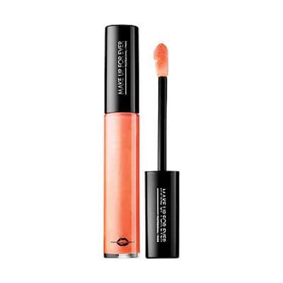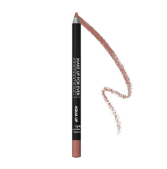 4. “For the lip, use a peachy color to compliment the burgundy. Use Aqua Lip Lipliner in 3C all over and fill the lip in. Finish by layering lip gloss onto your lips—you can make your lips look a little bit fuller by ‘over lining’ with gloss.”
