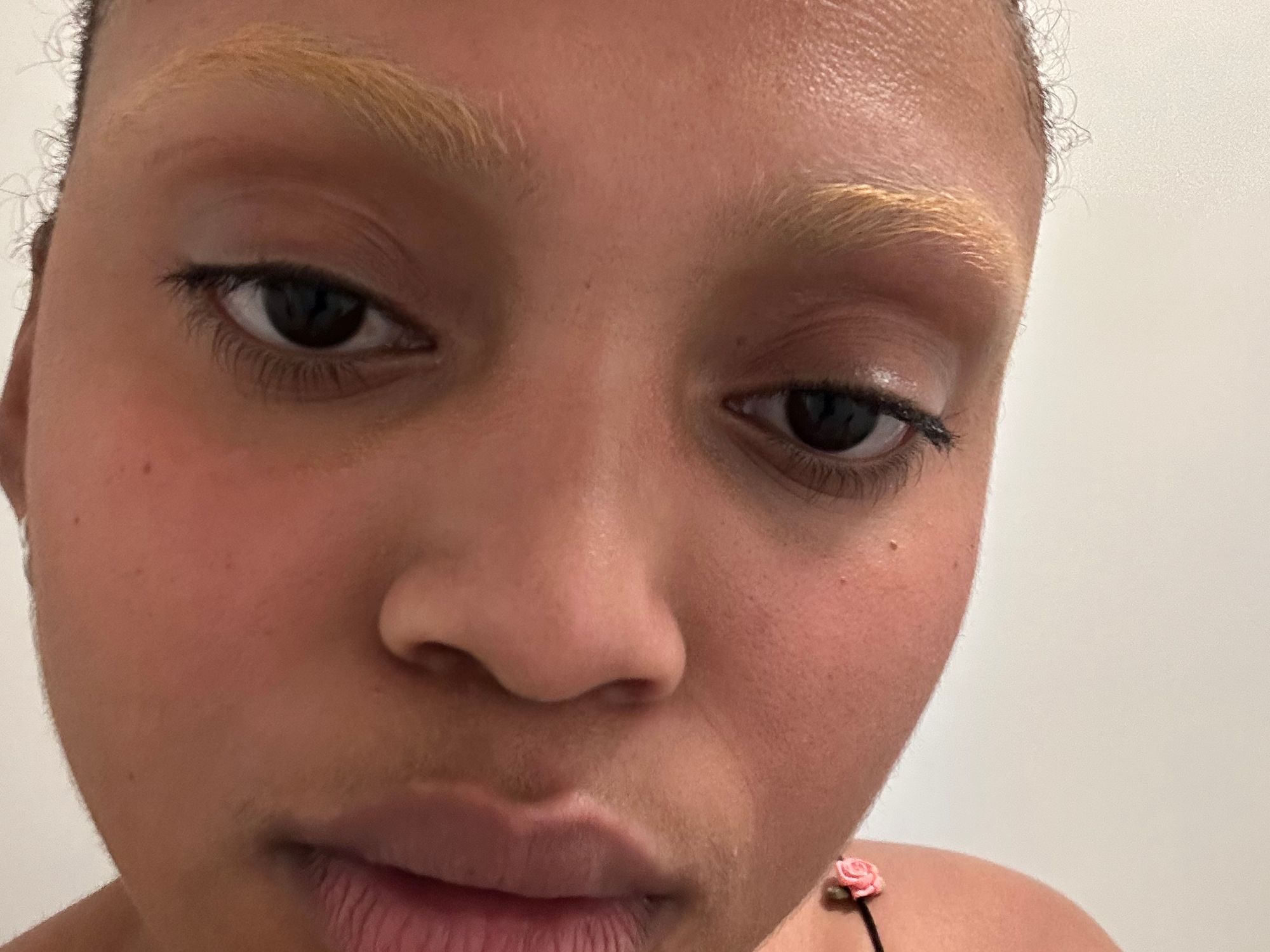 Despite a man on an app recently flirting with me by saying, "you have the most perfect eyebrows I’ve ever seen," I, impulsively, between a day of thrifting and a night at a tequila party celebrating the end of the US Open, bleached my eyebrows as "We Almost Broke Up Again Last Night" by Sabrina Carpenter played. When I say impulsively, I really mean this: I thought about it on and off for years, sometimes all in and, at other times, terrified of every last one of my brow hairs falling out, but finally decided to go through with it. This feels impulsive to me (a Capricorn). With fingers crossed and a box of the L'Oréal Féria Hyper Platinum Advanced Lightening System promising "crystal-clear platinum results" before me, I started combining ingredients (developer crème, bleaching powder, and hyper lightening crème) in what felt like a little science experiment. My friend, who was also bleaching their eyebrows in solidarity, was less nervous: they had done this before. They had bleached their eyebrows, shaved their eyebrows, and dyed their hair. I had never dyed anything before. Cutting off all of my chemically damaged hair in a big chop was intense enough for me.