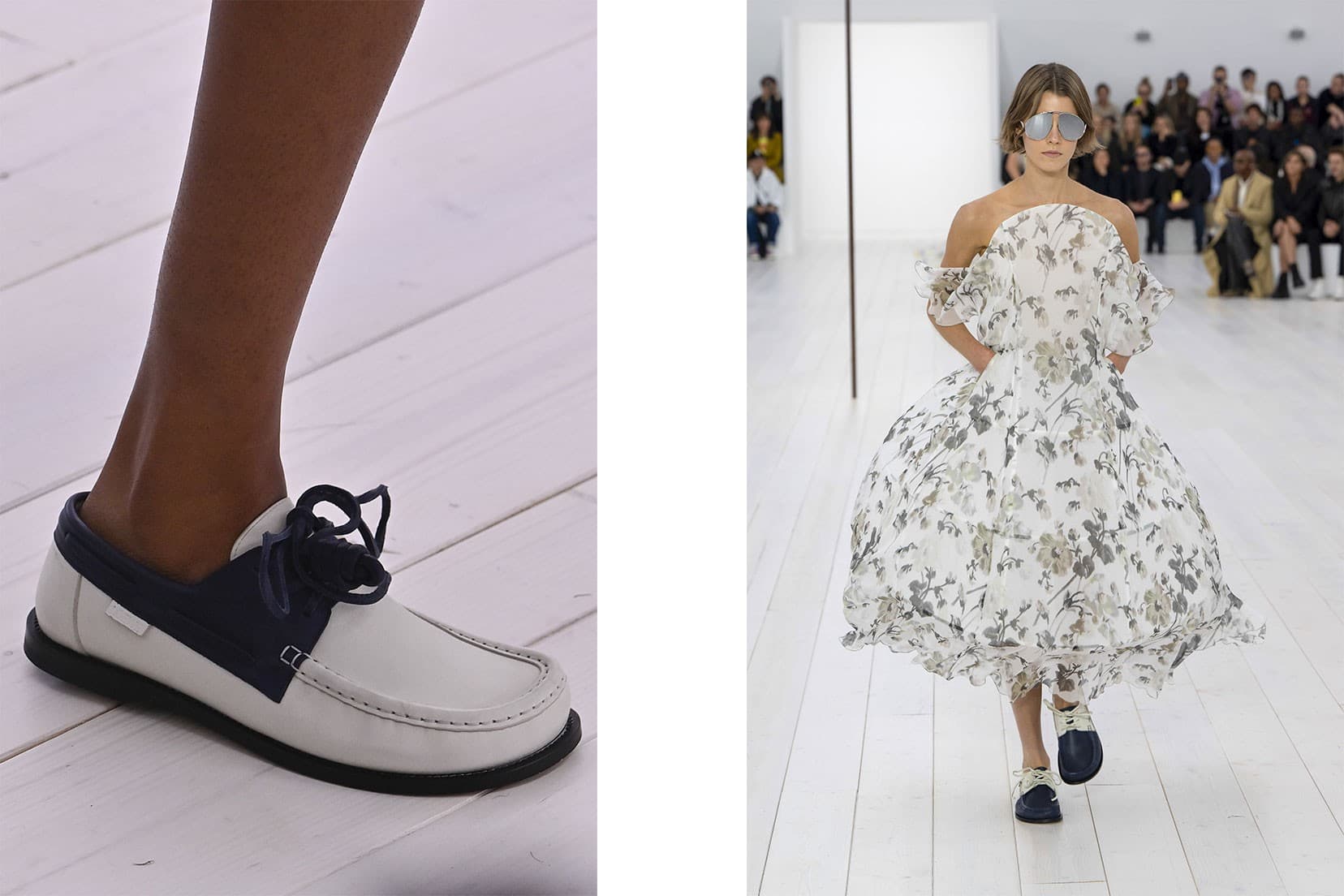 Miu Miu S/S'24 Getty ImagesThe first time I noticed them was for Miu Miu’s Spring/Summer 2024 show, which featured distressed and bleached leather iterations. At Loewe’s S/S ‘25 show, Jonathan Anderson sent a series of two-toned boat shoes down the runway, paired with sculptural, floaty floral dresses and hoop skirts. For Monse’s Fall/Winter 2025 show, boat shoes were re-appropriated as slippers, covered in shearling and worn with matching pajama sets.