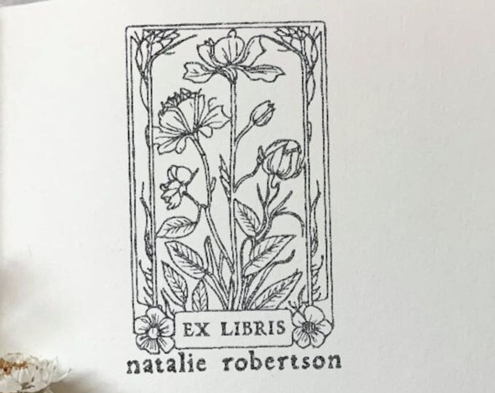 “My sister bought this for me a few Christmases ago. Now, all of my books feature a floral stamp with my personal insignia.” — Camille Freestone