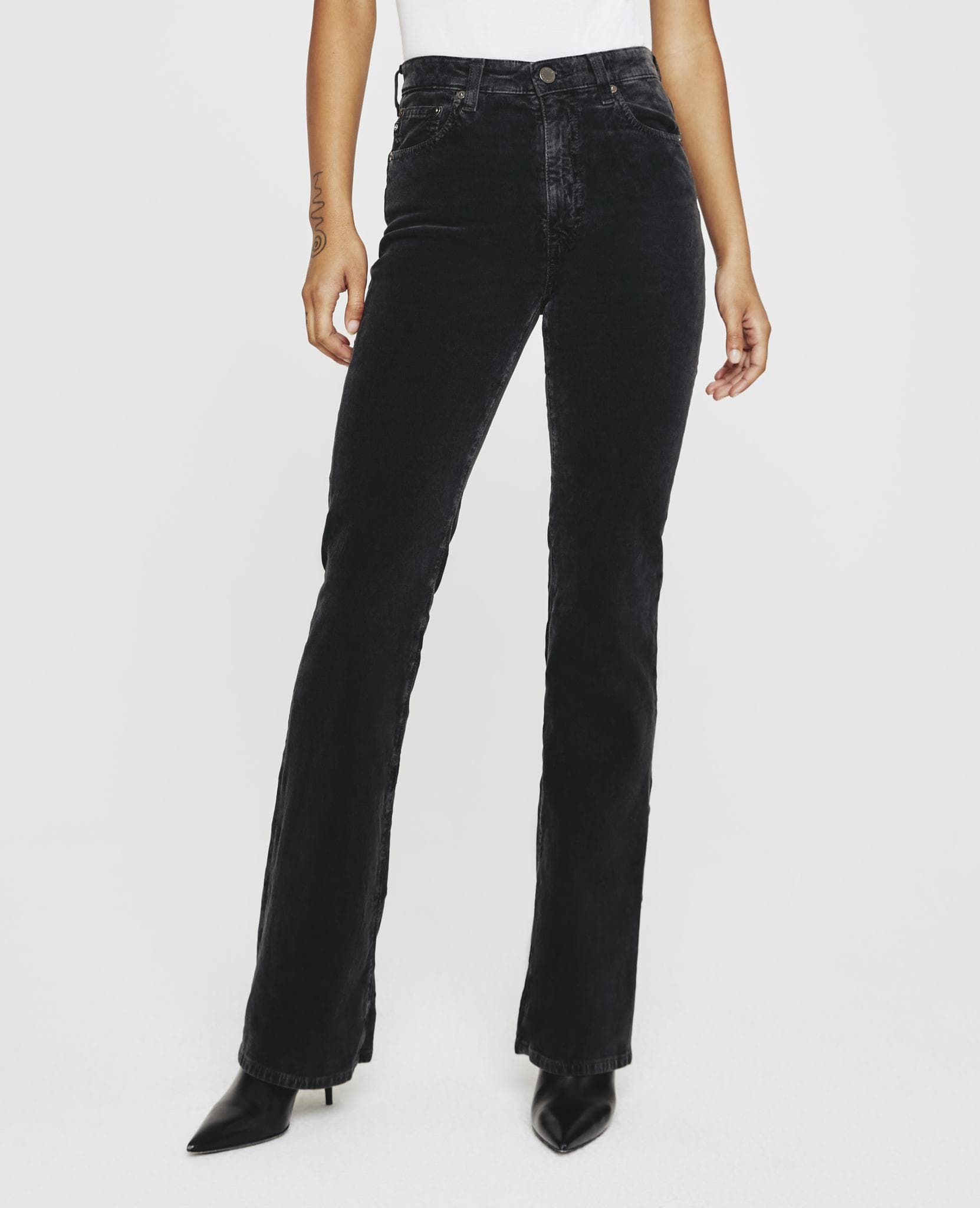 The concept of a bootcut pant falls somewhere between a flare and a straight leg—just wide enough to permit a boot beneath its breadth. Despite its named function, the style can also be paired with sandals, heels, flats—there are no restrictions when it comes to footwear. A runway favorite of current brands like Khaite and Bottega Veneta, this practical style can be worn in an extremely wide array of ensembles.