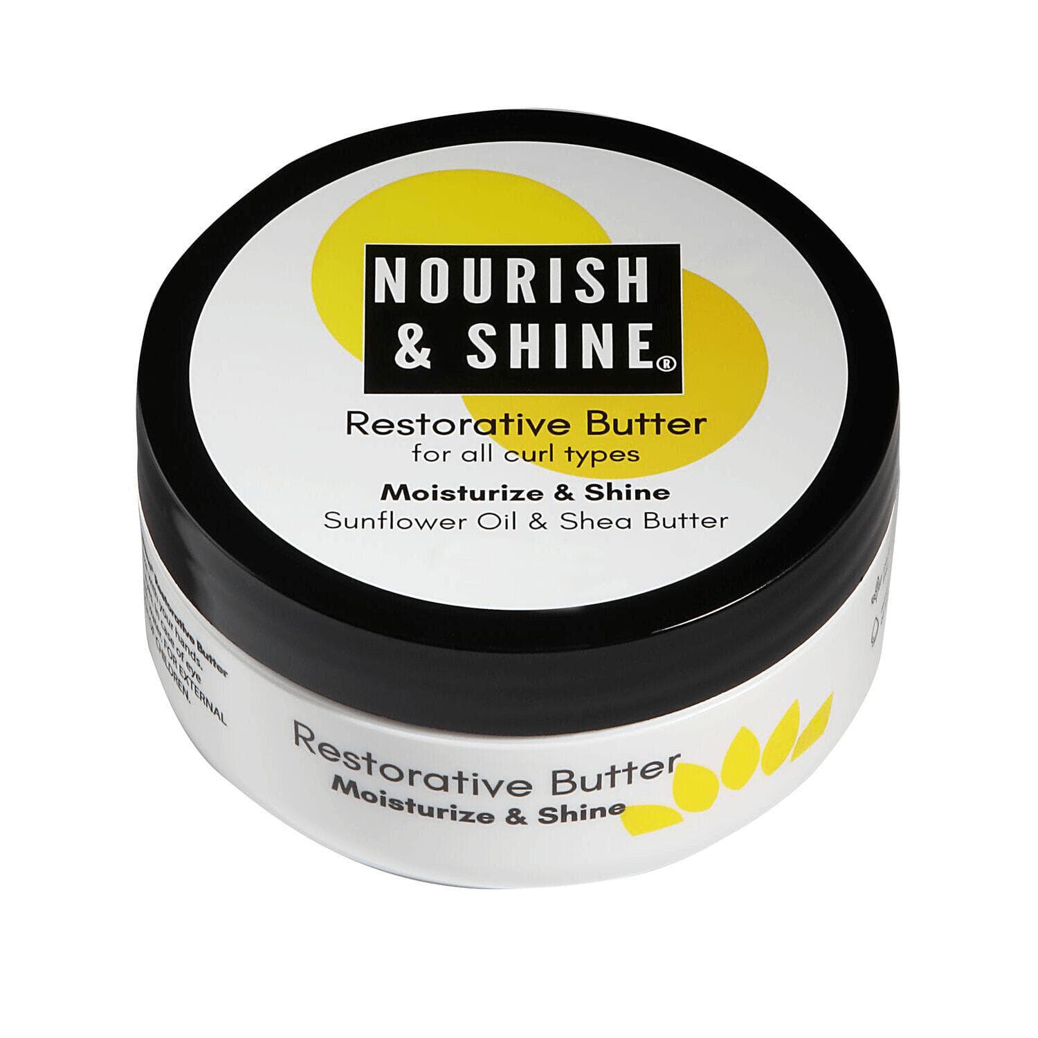 Jane Carter’s Nourish and Shine Restorative Butter is James’s core product for styling her cut. “It’s very light and smells amazing,” she raves. “I use it sort of as a mold if my hair is getting a little thicker and that will hold it.”