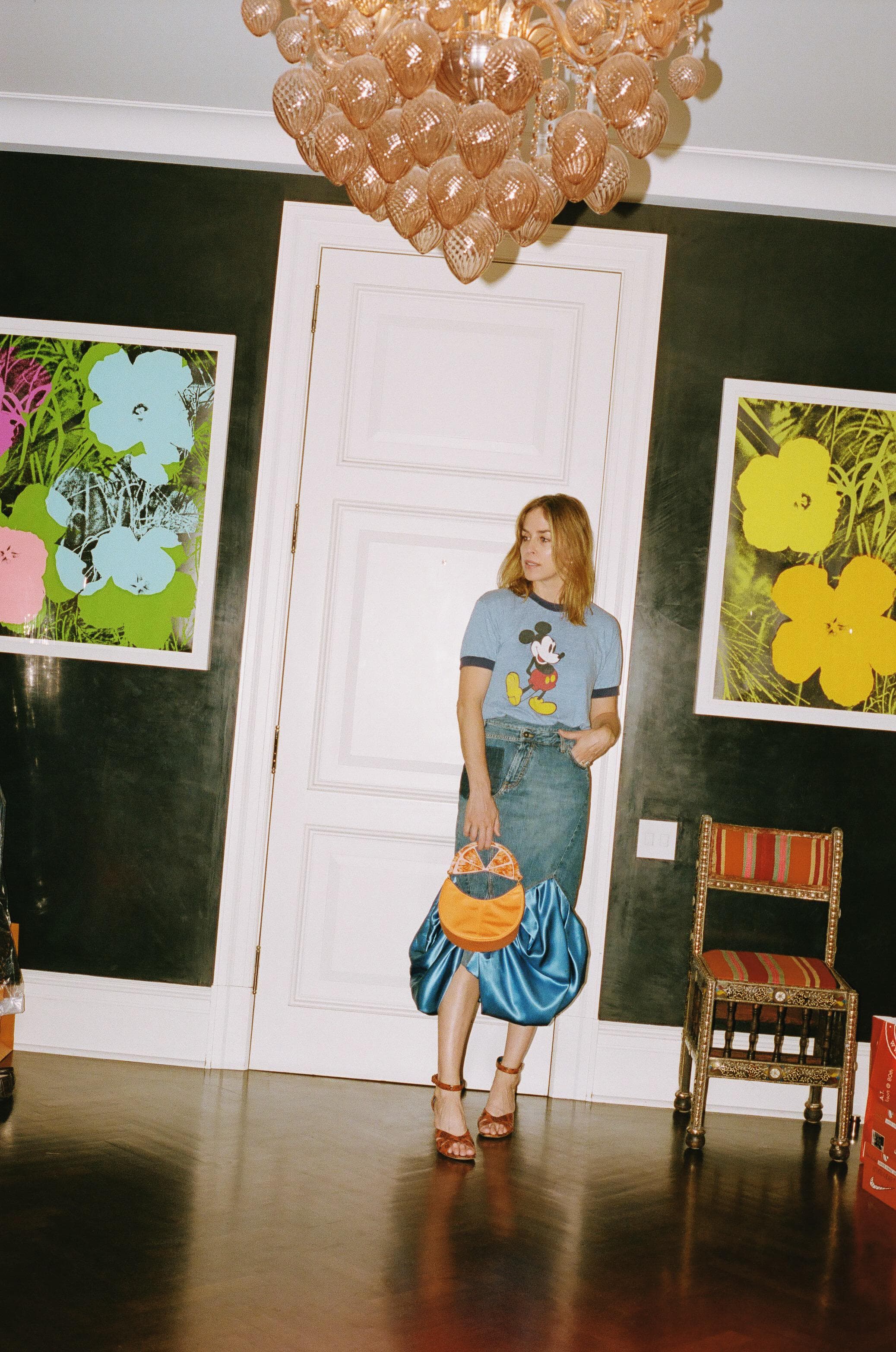 Photo: Christina Stoever“I bought this skirt this past year. It's Loewe, but I love it because it looks like an old Junya [Watanabe] skirt I sold and always regretted it. I'm obsessed with it and I've worn it to everything—Paris, my friend's birthday party. It's the kind of clothing piece that really makes me happy. That Mickey Mouse tee is vintage that I've literally had since high school and wear all the time. I had the sweatshirt too, and my daughter stole it from me. So I have to guard the T-shirt with my life. I'm also wearing old Celine orange shoes with that because again, I feel like once you look insane, you should just pile it on. This was a day look for me, but [I wore] it to cocktails.”