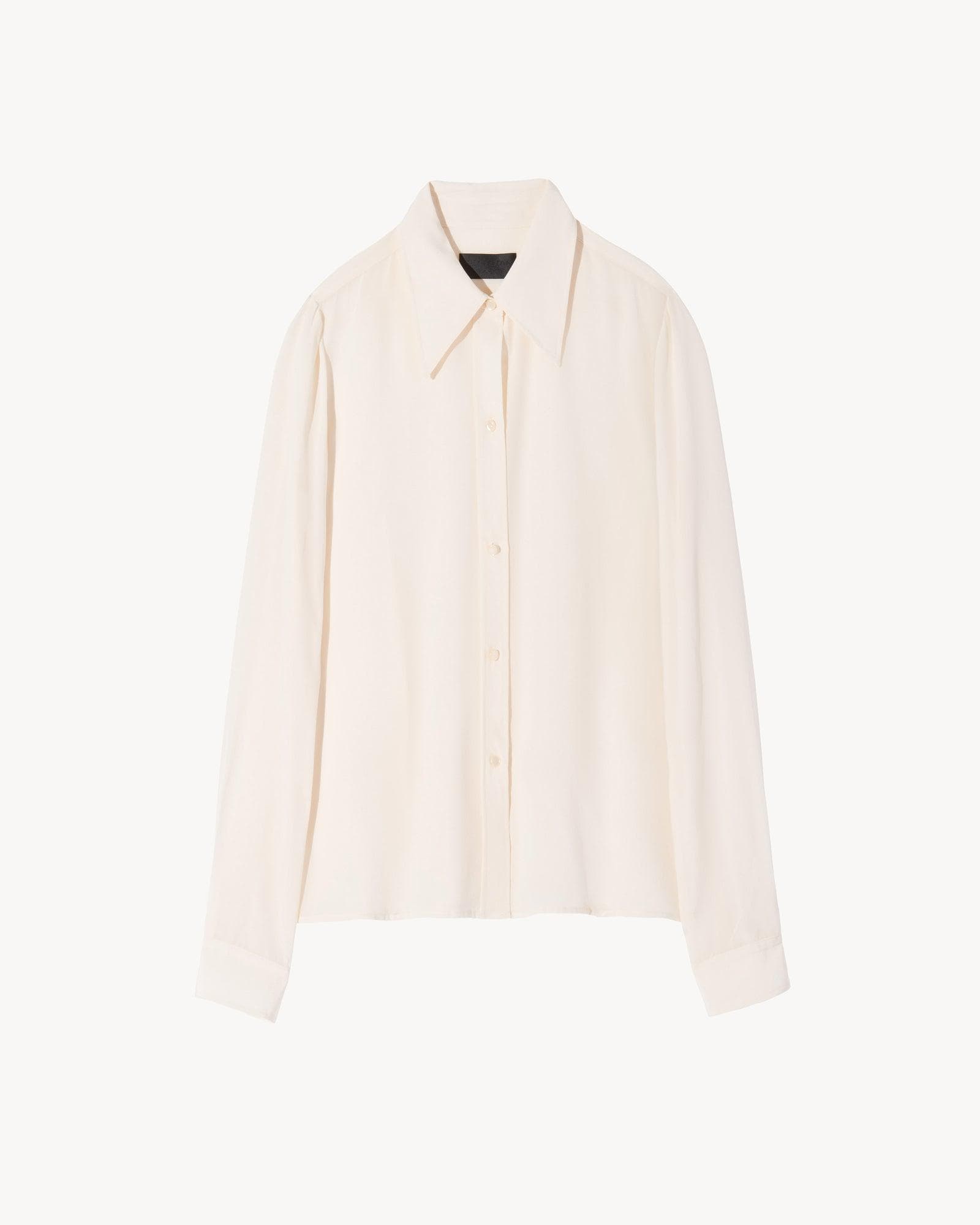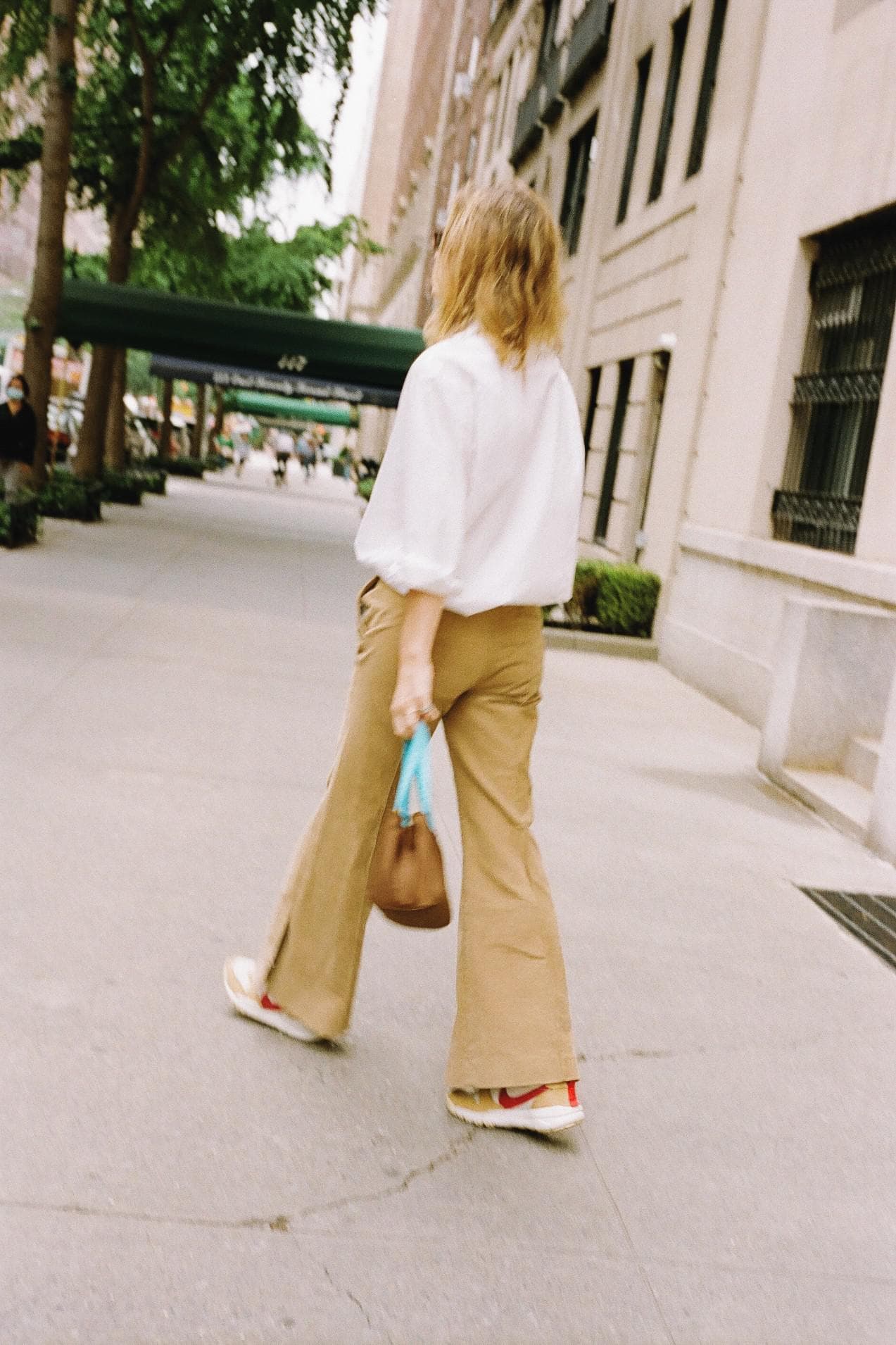 “Those khaki pants are old Phoebe [Philo] Celine. I bought them in the boutique and they're the kind of pants that would never end up in my RealReal pile. I love them. They are good for every season. They fit perfectly. They look cute with heels, sneakers, whatever. So I wore that to work and you'll notice I have my favorite Tom Sachs Nikes on. That was a day where I walked downtown to the office and I could walk for an hour in them. The button down is Nili Lotan. And I have that Edie Parker Bodega bag with it. This outfit is my perfect work outfit. It's comfortable. I can walk everywhere. I can go to lunch. I can just be a very happy New Yorker in that.”