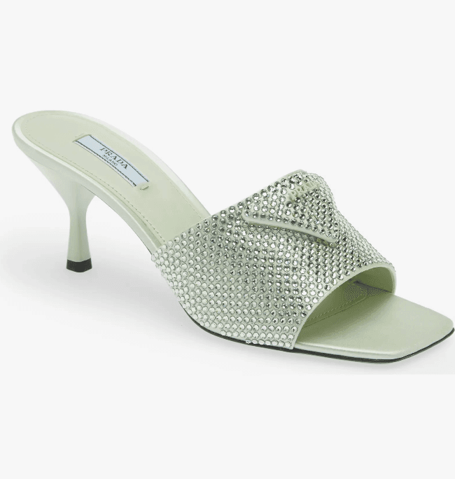 Those shoes are Rochas shoes and I've had them forever. I don't buy a lot of new shoes because I feel like I'm least interested in shoes. Especially with a colorful outfit, I'm always pairing a colorful shoe with it. It's mood-lifting for me. I always joke that life is so serious, so your accessories shouldn't have to be. I just think pink and green are really pretty together, but most shoes I think would look good [with this dress].”