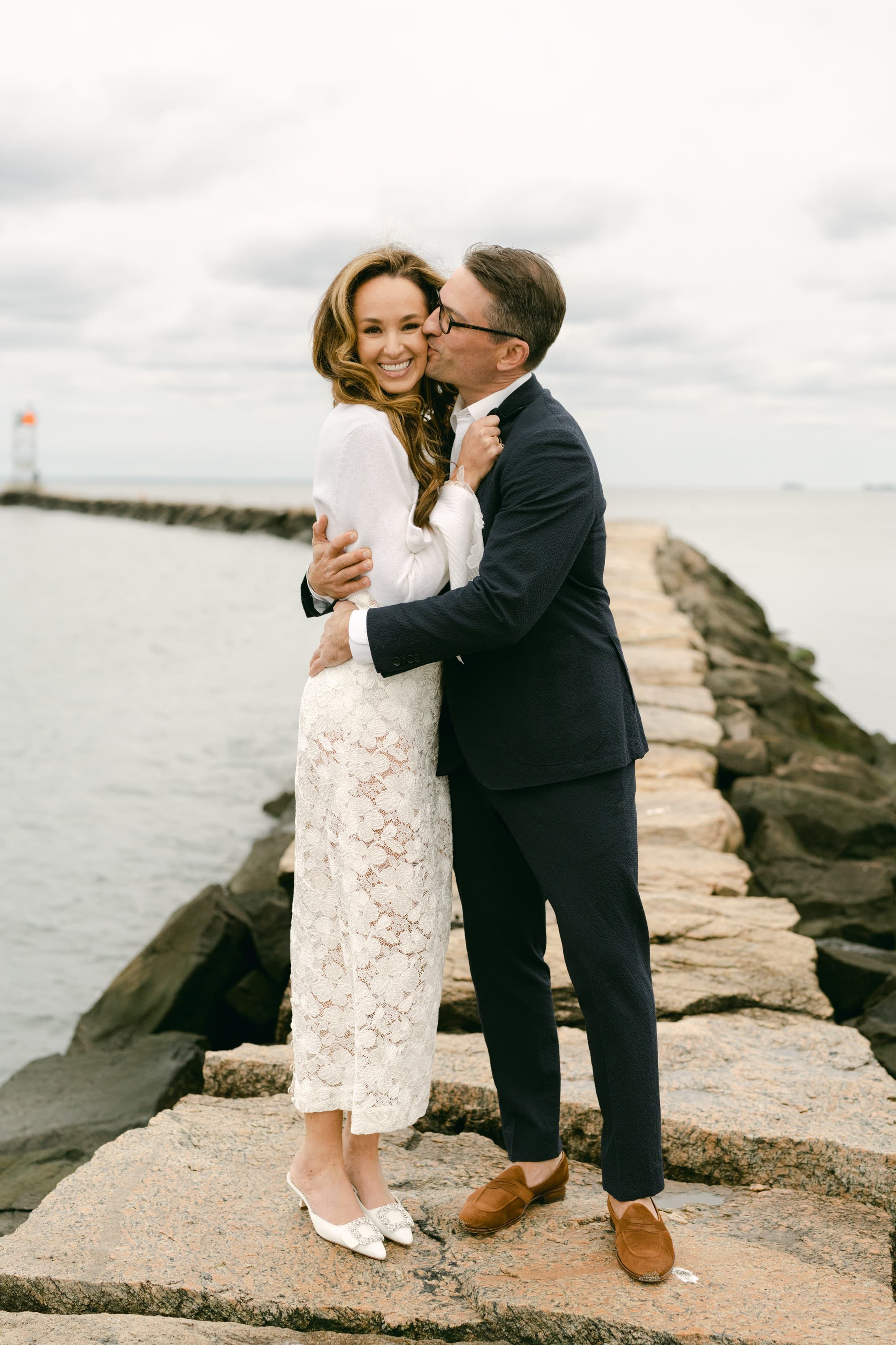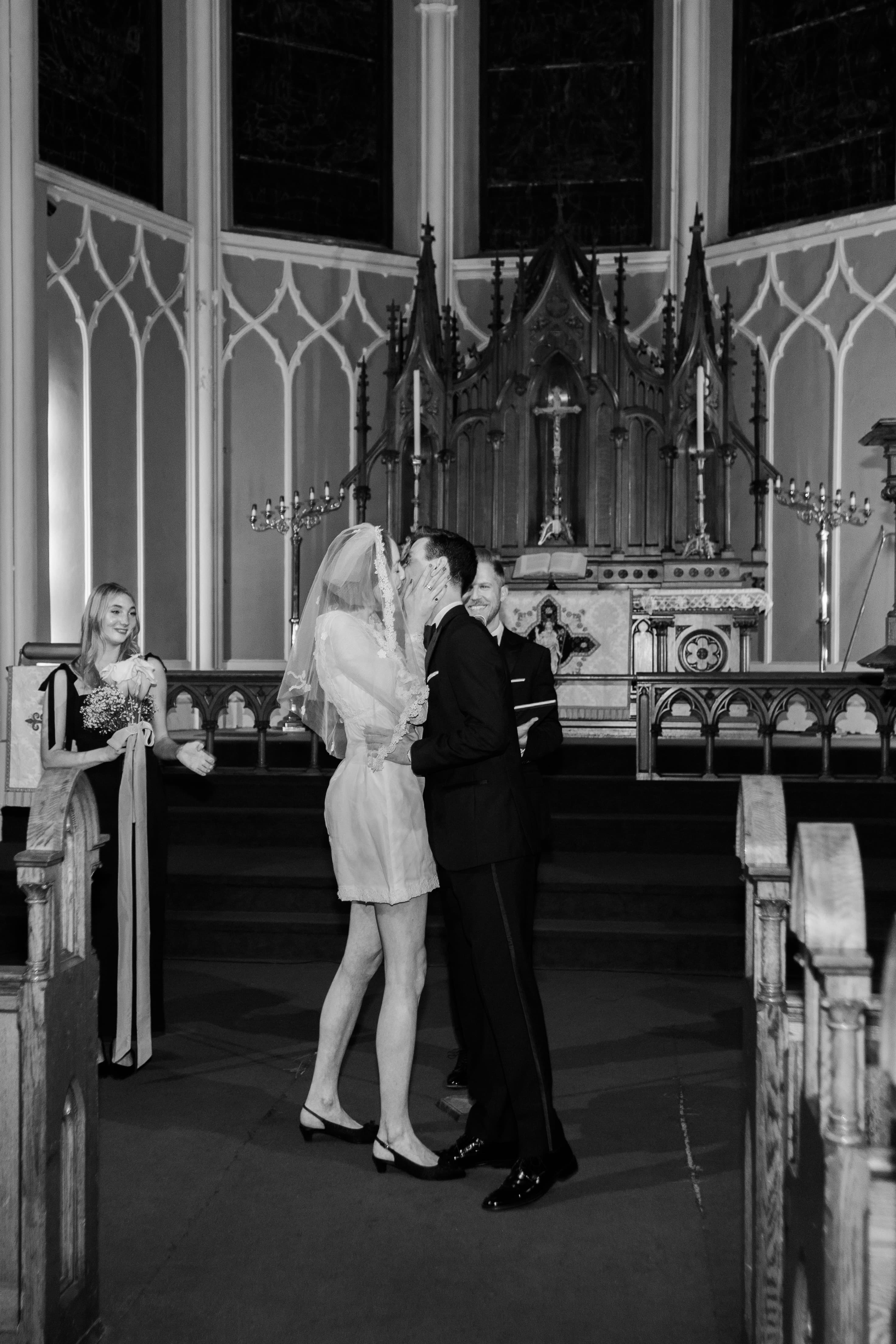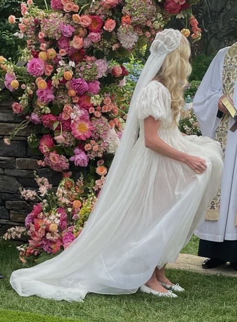 “Being over six feet tall, I wasn't looking for height. I just wanted a little something to complement the hemline of my dress. Slingbacks proved to be a very comfortable choice. I even packed a pair of signature loafers to change into at the reception, but forgot entirely. I love that my bridal look is just that: a bridal look. It's not my everyday style, which leans more masculine and oversized, but it captured the joy and whimsy of the day perfectly.”