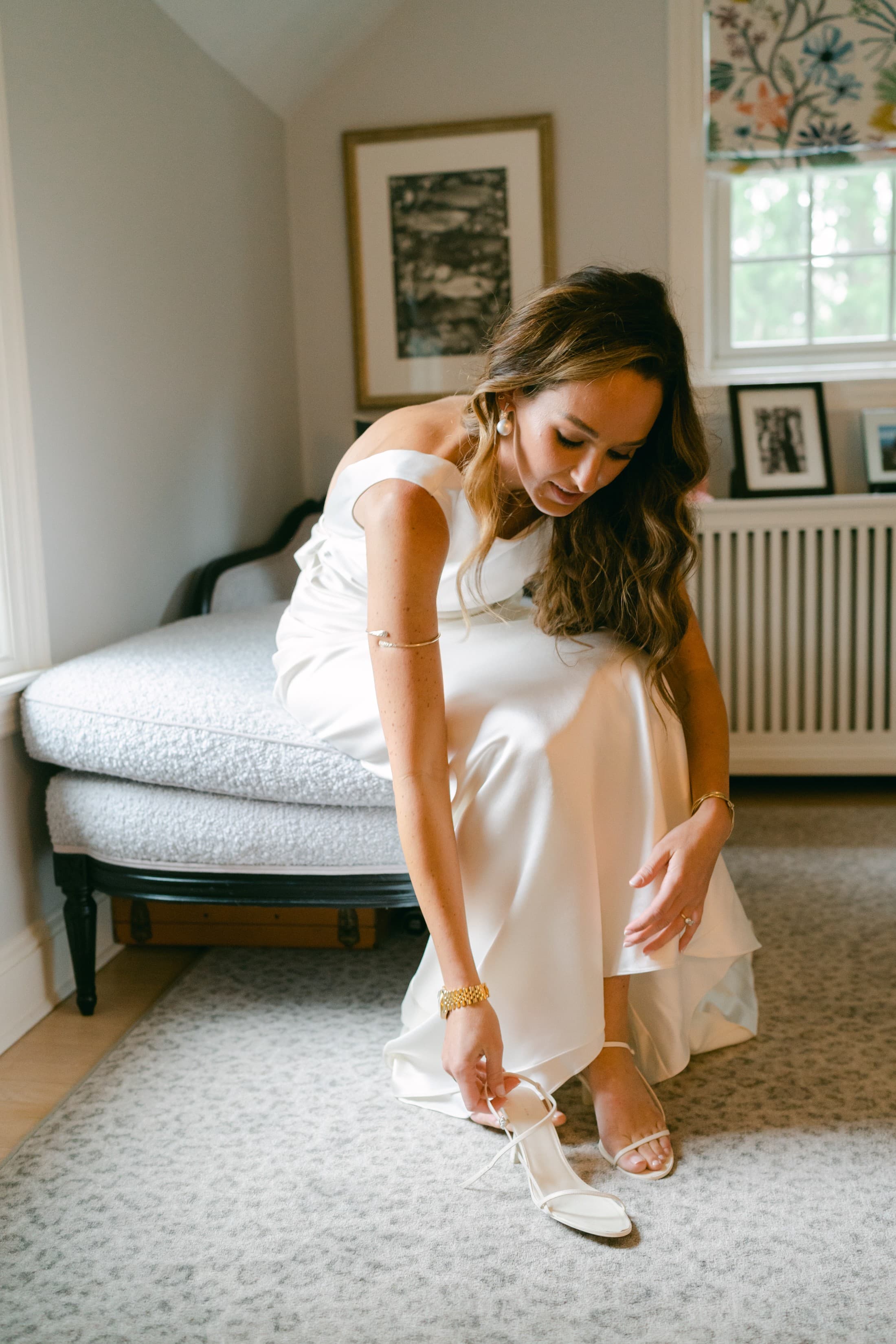 “For the wedding ceremony, I chose to wear The Row Bare Sandal. I wore a one-shoulder slip dress, which I initially thought could withstand a statement shoe like these [from] Altuzarra. Ultimately it came down to simplicity. I decided I didn’t want to distract from the overall look, so I went for something more timeless. I felt like the shoe was an extension of the dress.