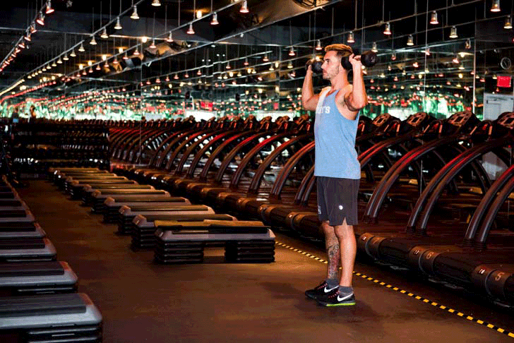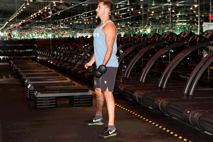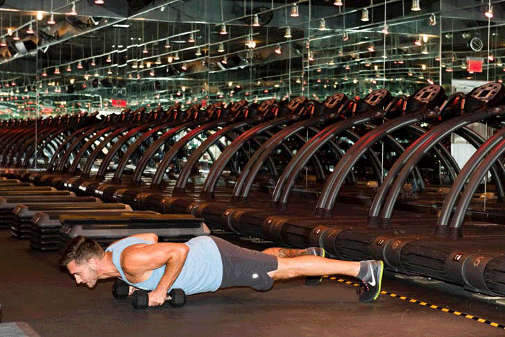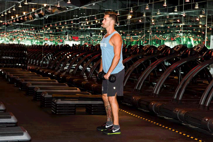If there ever was a time to believe that using weights heavier than five pounds won’t give you bulky muscles, it’s right here, right now. After all, Barry’s Bootcamp managing partner (and trainer to lithe bodies like Nina Agdal and Britney Spears), Derek DeGrazio’s workout is proof that dumbbells are good for the body. Relax, we’re not going to throw you in all at once—we’re friends, guys—so we had DeGrazio take us through a total body toning, but completely DIY exercise routine that he’s done with the best of them (as in, the aforementioned ladies). Pop stars and Victoria Secret models, they’re just like us.