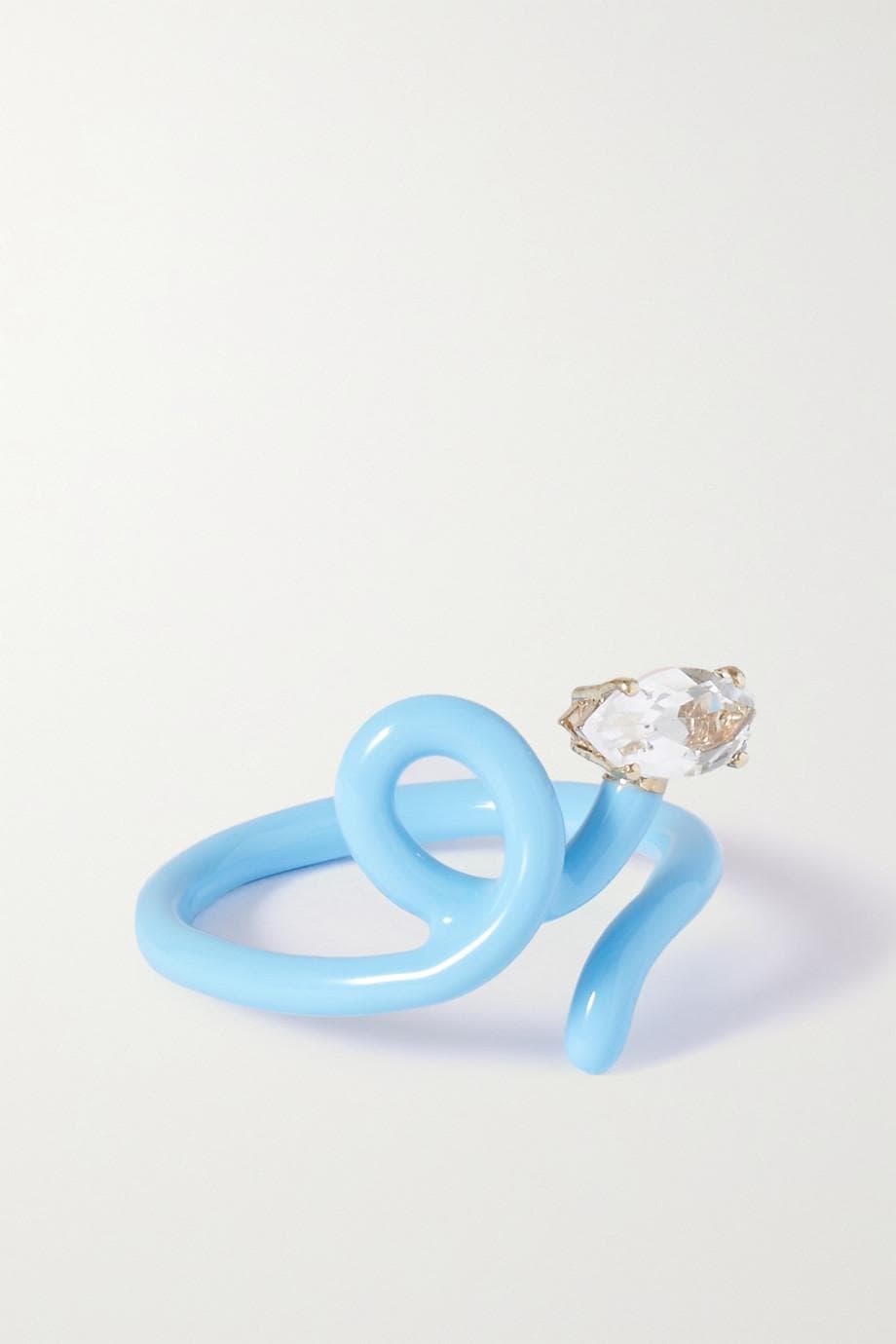 Baby Vine Tendril Gold, Silver, Enamel and Rock Crystal Ring