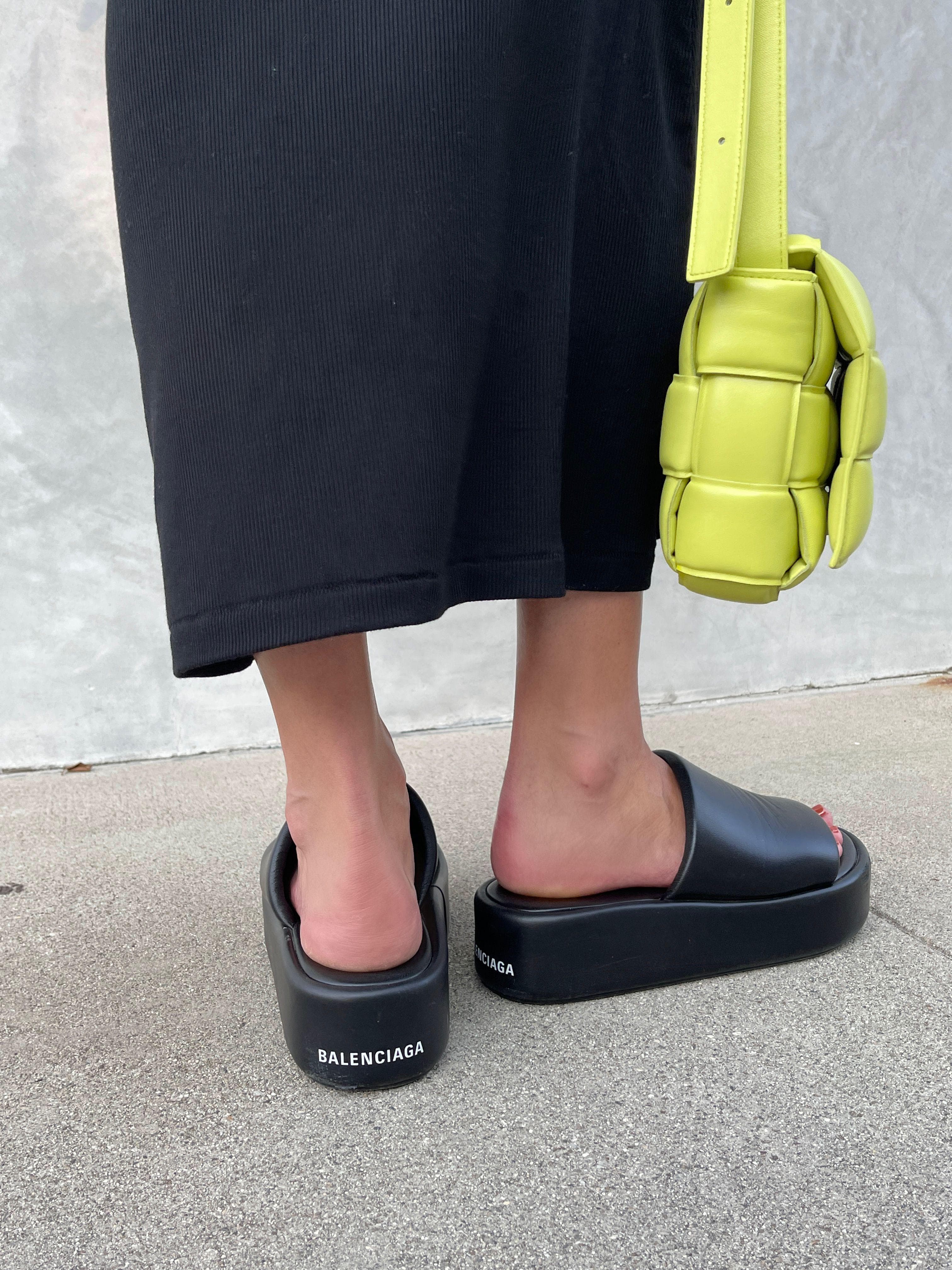 "This look is one of my go-tos, especially when I'm running errands or have a doctor's appointment. The dress is beyond comfortable and the material is perfect for a hot summer day—great coverage but still lightweight enough. I've also been wearing these slides nonstop—especially since leaning over to tie any laces is getting more and more difficult as I near the end of my pregnancy."