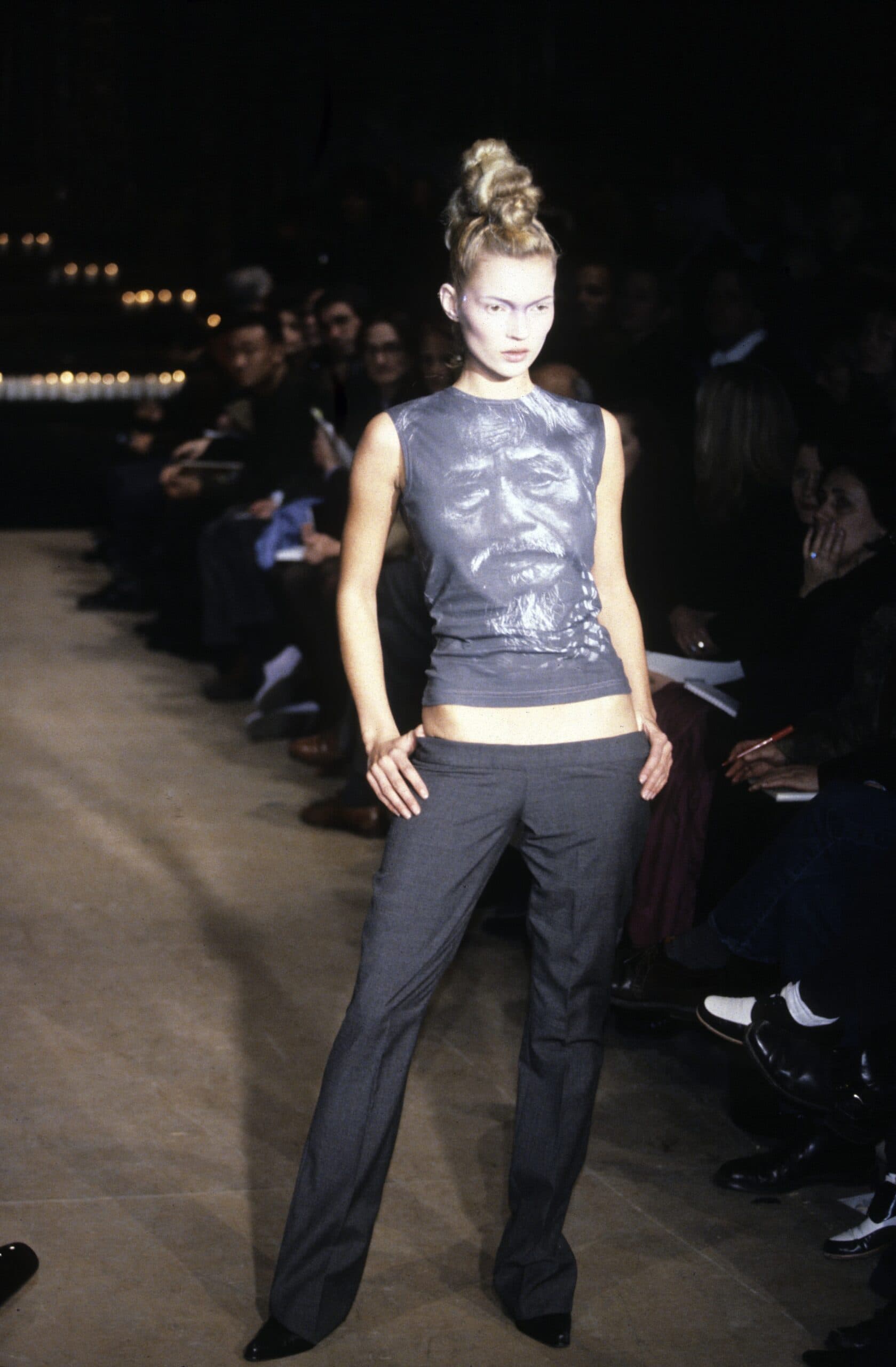 It was 1993 when the late Alexander McQueen debuted his first ever collection, titled “Taxi Driver,” under his namesake label at the Ritz. His graduate collection out of Central Saint Martens was supposedly a reference to the movie of the same name by Martin Scorsese, but knowing McQueen’s working class background, many posited that the collection name was also a reference to his father, who was a taxi driver. The collection featured a series of black satin pants and skirts with decidedly low waistlines. At the back, waistbands dipped even further into a subtle "V," exposing the very top of the models' bum cracks—and thus, the “bumster” pant was born.