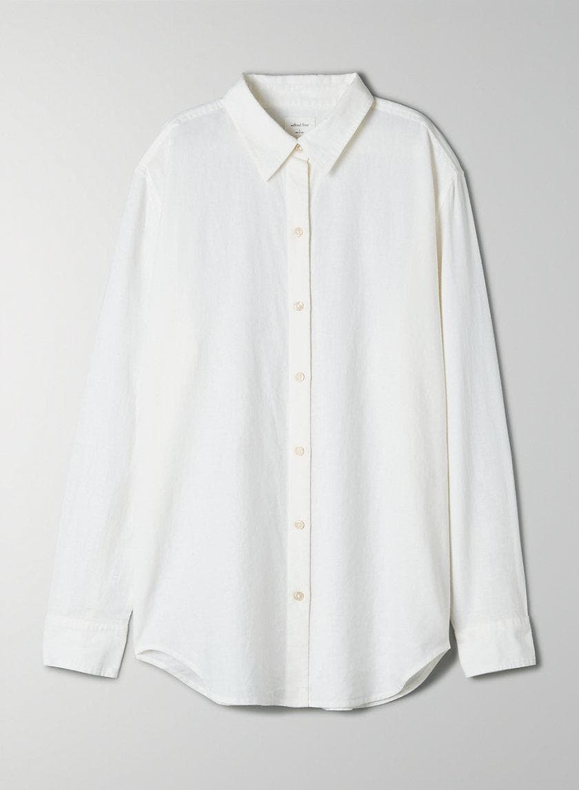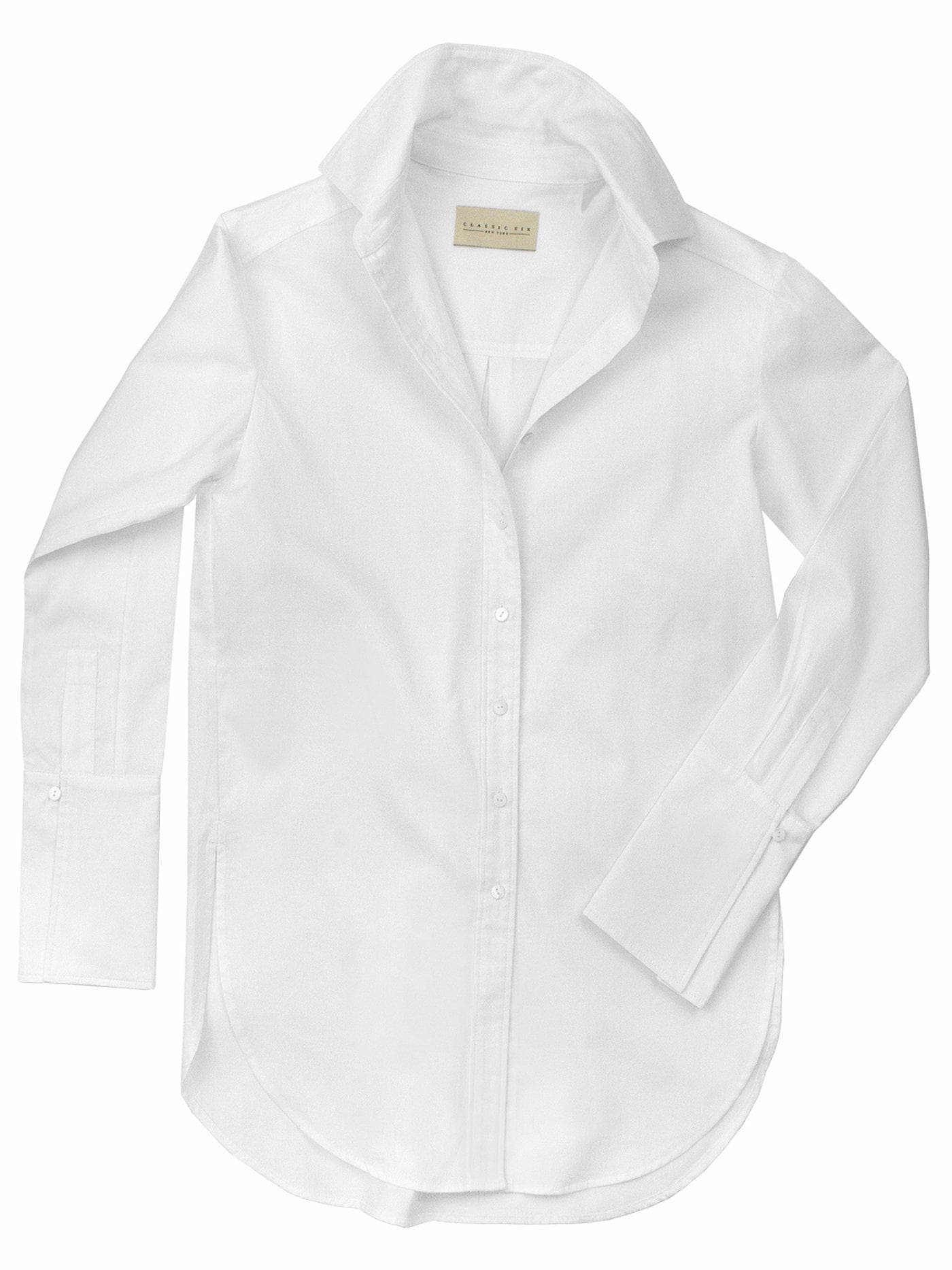 We are willing to bet that if anyone reading this were to venture over to their closet, they would find at least one (or ten, in cases like myself) white button-downs in some form or fashion. Probably one of the most versatile items in your repertoire, the crisp shirt style, commonly considered a fundamental "basic," shifts easily between formal wear—tuxedos, business attire, Carolina Herrera–esque skirt pairings—to casual wear like denim, leggings, etc.