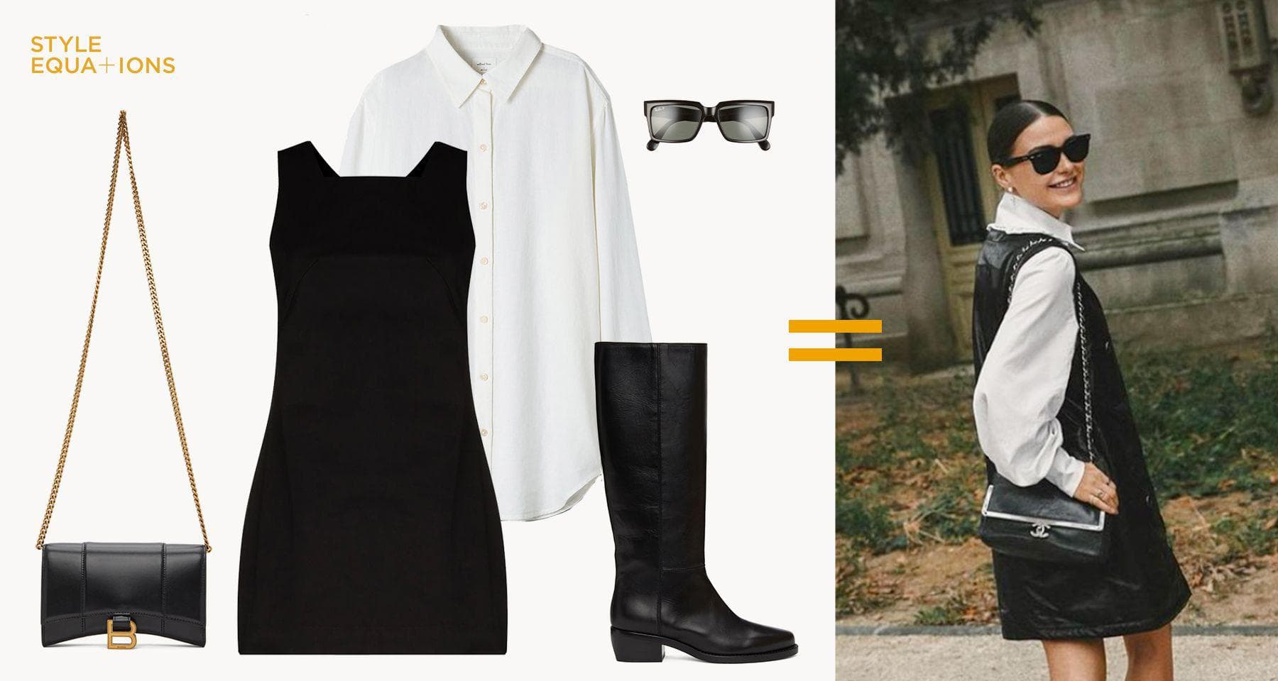 Right photo: Courtesy of Instagram/@sophiaroeButton-downs are a great layering staple, and not just for your sweaters. Opt for a simple shift dress as the top layer, and complement the mini hemline with a knee-high boot.
