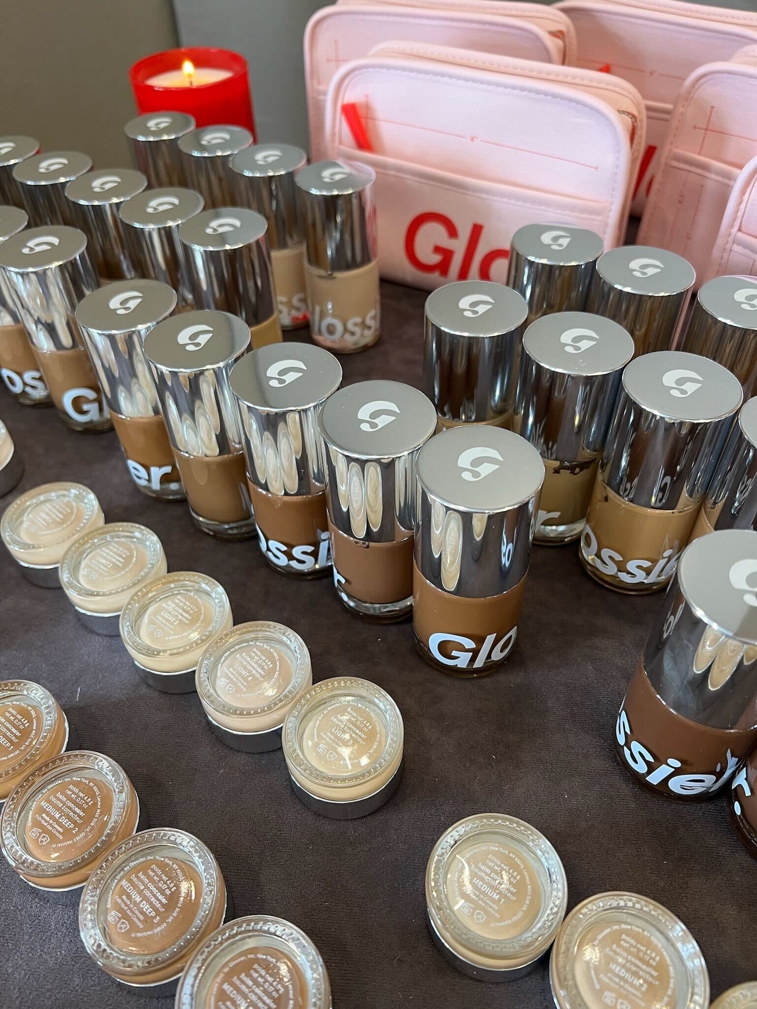 Afterwards, she used The Stretch Foundation in Medium 1 to “give her face a really balanced color,” before brightening up Clark’s under eyes with Stretch Concealer. “It’s so creamy and goes on very smooth,” says Flowers. “It’s something that defines the look.” To set the base, Flowers powdered the skin without overdoing it: “The Glossier girl has some type of shine and dewiness on the skin, so I didn't want to mattify her skin too much.”