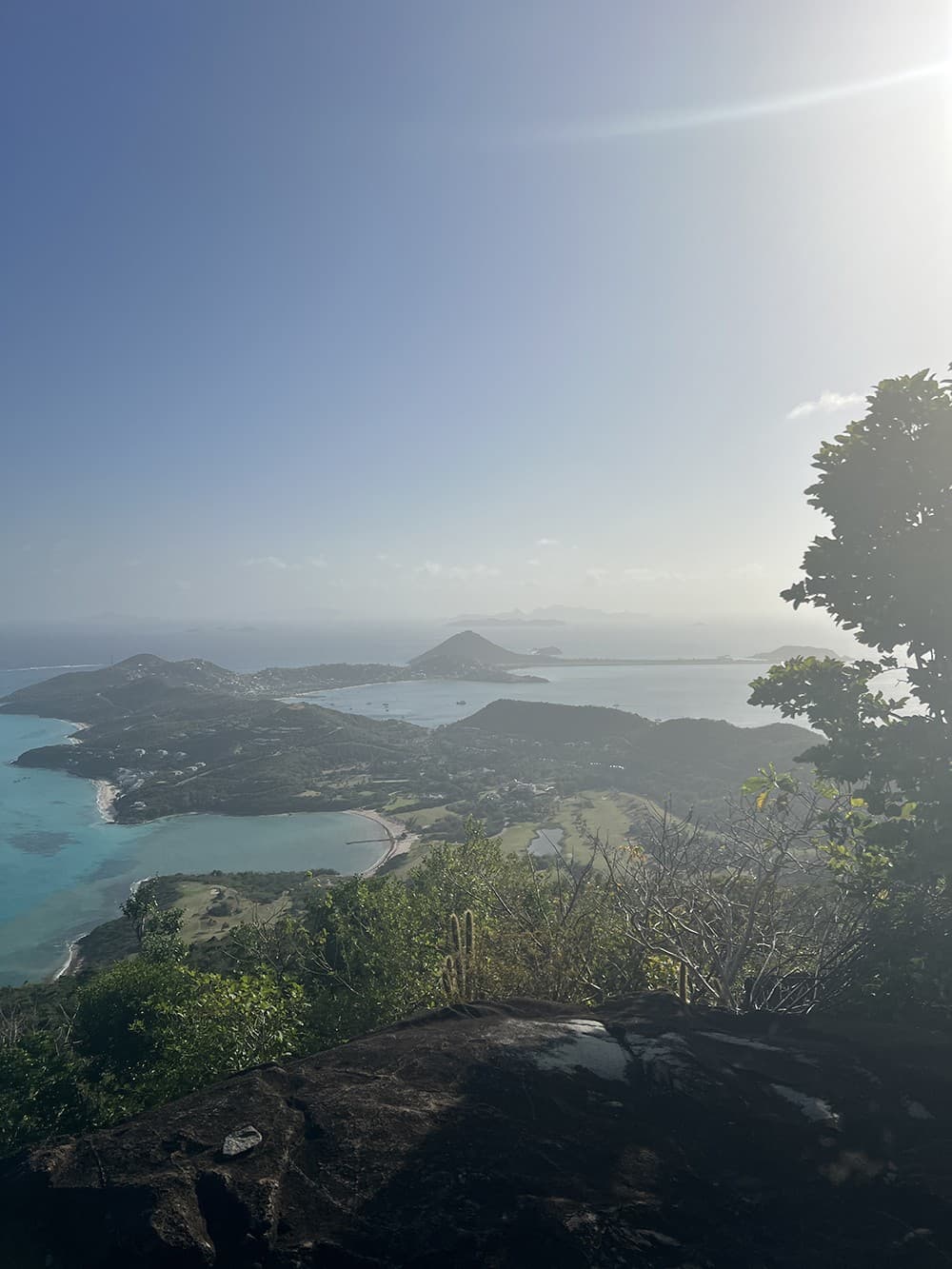 However, if Boat Alison is a confident vision in her long-neglected swimwear, Hiking Alison is something of a sweaty, panting mess. I discover this several hours later as I embark, dressed in a crop top and New Balance sneakers, upon what I assume will be an easy jaunt to the top of Mount Royal. At 877 feet, it is the island’s highest summit. Despite our guide's attempts to distract us with his best Shaggy impression—his rendition of “Angel” is excellent—I’m hyper-aware that much of our climb is more of a vertical, quad-burning march than a gentle uphill stroll. At the top, though, we are rewarded with a kind of gobsmacking view that looks like it was green screened into all my photos: endless stretches of aquamarine water dotted with rocky peninsulas, a sparkling cerulean sky. Honestly I'd do the whole thing again, even without the private concert on the way up.