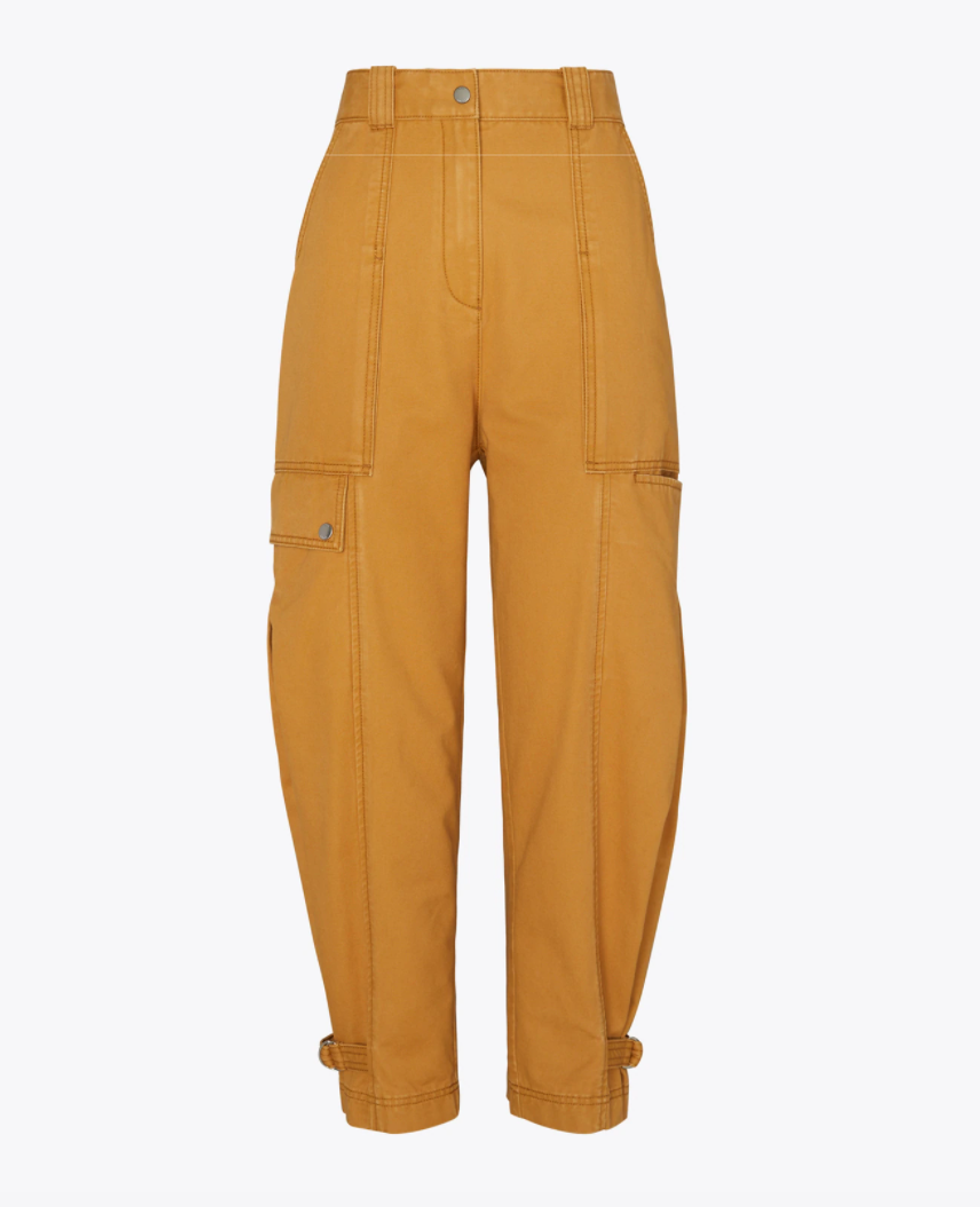 This time around, designers have elevated that style, reimagining fabrications, silhouettes, and most important, styling, to convince us that it is, well, chic. A silhouette defined by its pocket, cargo pants are boxy in fit and can either fall to the floor in a wide-leg silhouette or taper off to the ankle, depending on the designer's preference. A staple at Tibi, Jacquemus, and Dion Lee, cargo pants have been worn on the streets by everyone from Bella Hadid to Sarah Jessica Parker.The trick, as with everything else, is to steer your other pieces in the opposite direction. Lean into the idea of dressing like Kim Possible with a slinky top or bodysuit that counterbalances the bulk of the pants. A boxy sweater or blouse will pair nicely with a high-rise option that will create a natural waist. To finish things off, we recommend a strappy sandal.