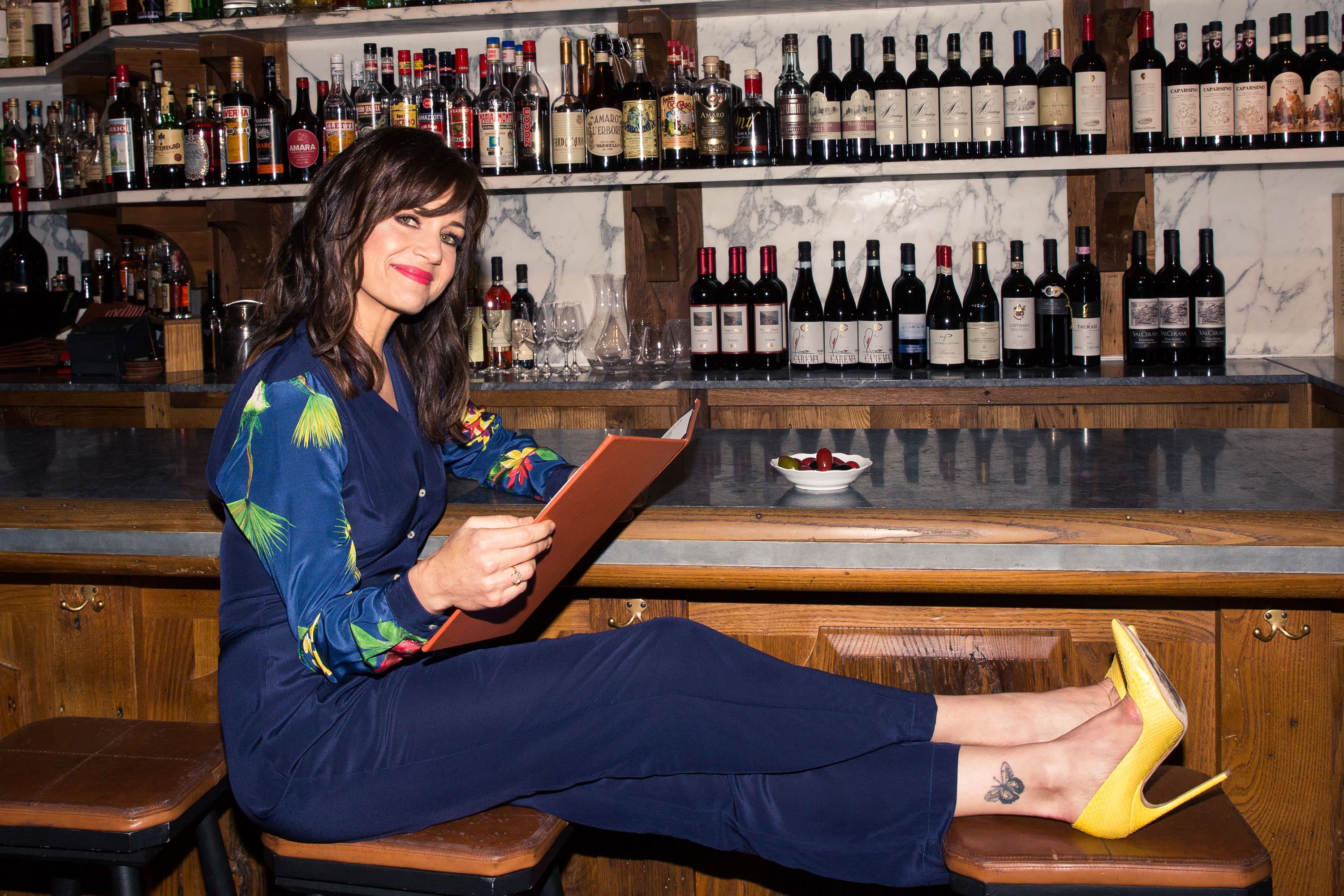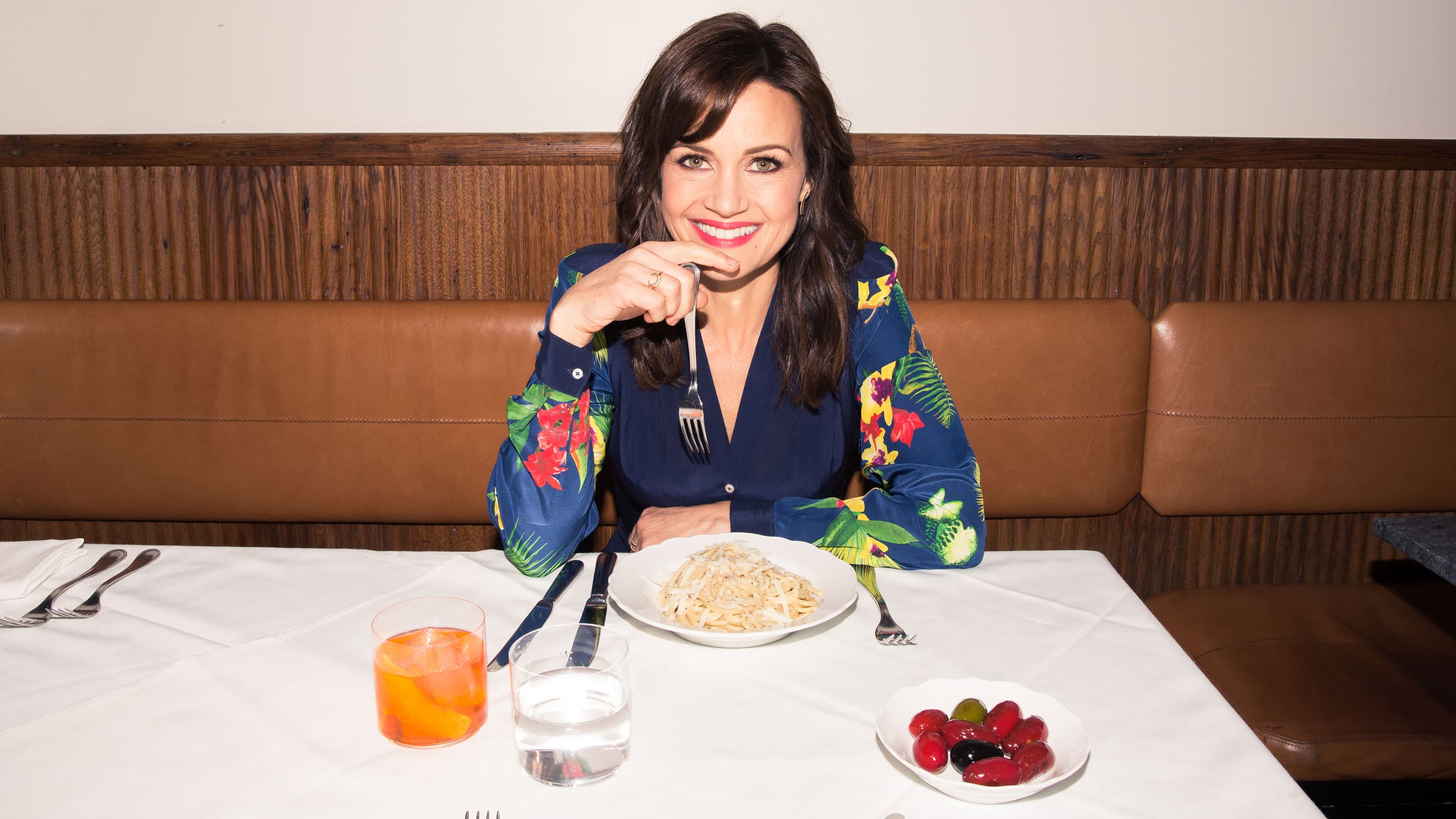 While residing in Albuquerque, New Mexico, filming her latest movie, The Space Between Us, self-confessed foodie and actress Carla Gugino must have missed New York City at least once a day. And not for its charming cobblestone neighborhoods and plethora of things to do at any waking moment, but for the food: the fresh northern Italian, the gluten-free cookies that don’t taste free of anything; the almond milk cortados from a local coffee shop; the drinks atop a rooftop bar that once belonged to RuPaul. Those are the kinds of places Gugino frequents when she’s back home in the city, which we became privy to when we tagged along on her tour de food through the West Village and Chelsea. Think of this as a great template for those weekends when you find yourself with “nothing to do.” Just follow Gugino’s lead, and by the end of the day you’ll be happily stuffed with cacio e pepe, cookies, champagne, and coffee. Otherwise known as the most perfect day ever.