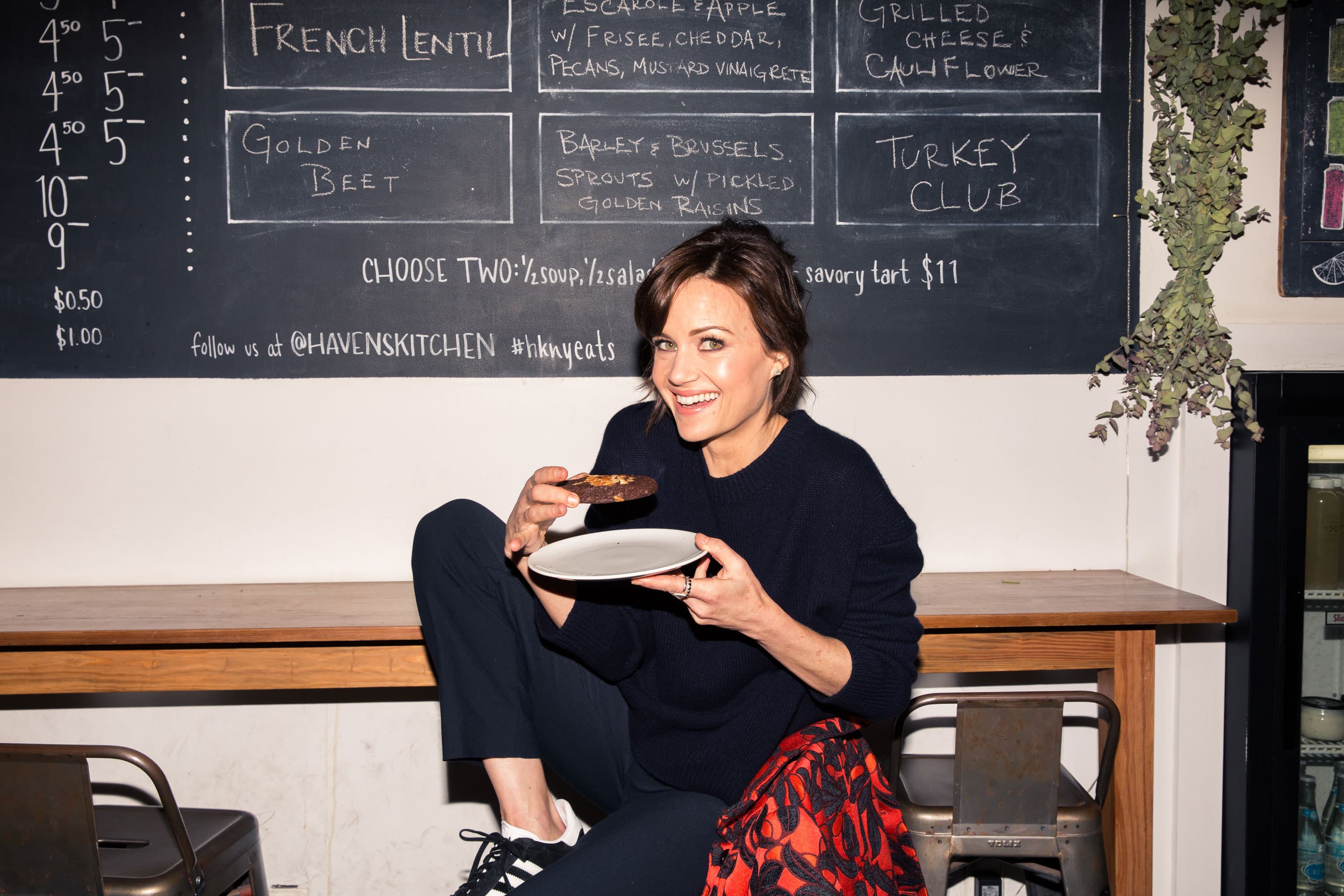 “I’m obsessed with the cafe Haven’s Kitchen—it’s also a wonderful cooking school. I love their gluten-free chocolate coconut cookies! And they make my favorite homemade almond milk cortado. I also like their frittatas in the morning. It’s just a place where I run in and out and they’re always so lovely. Because they’re also a cooking school, they just have a wonderful aesthetic, both visually and in terms of their food.”