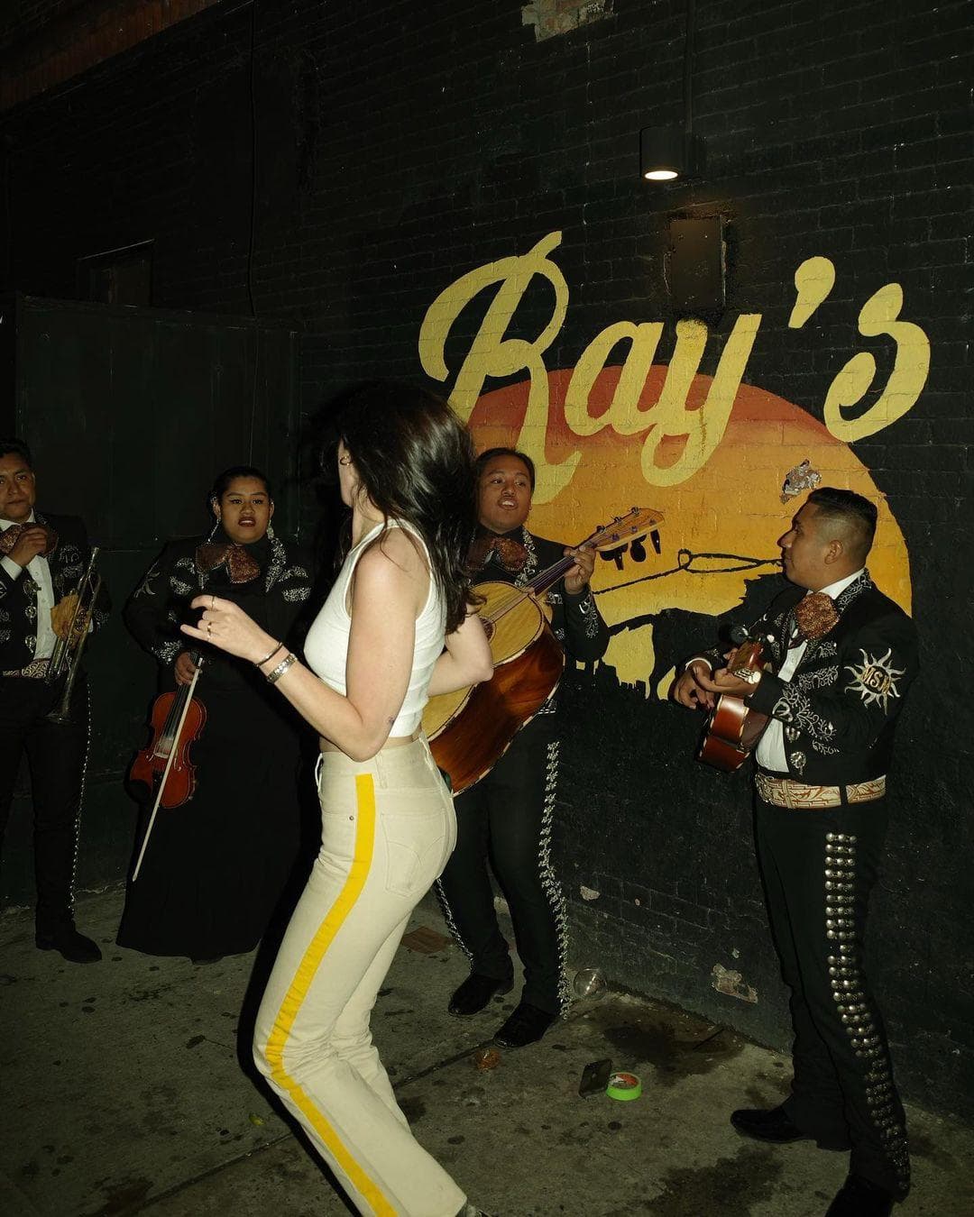 Leopold dancing with a Mariachi band outside of Ray's Bar.